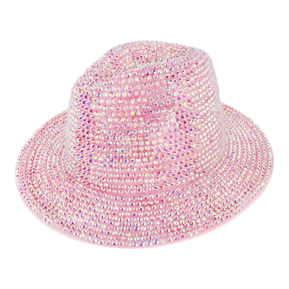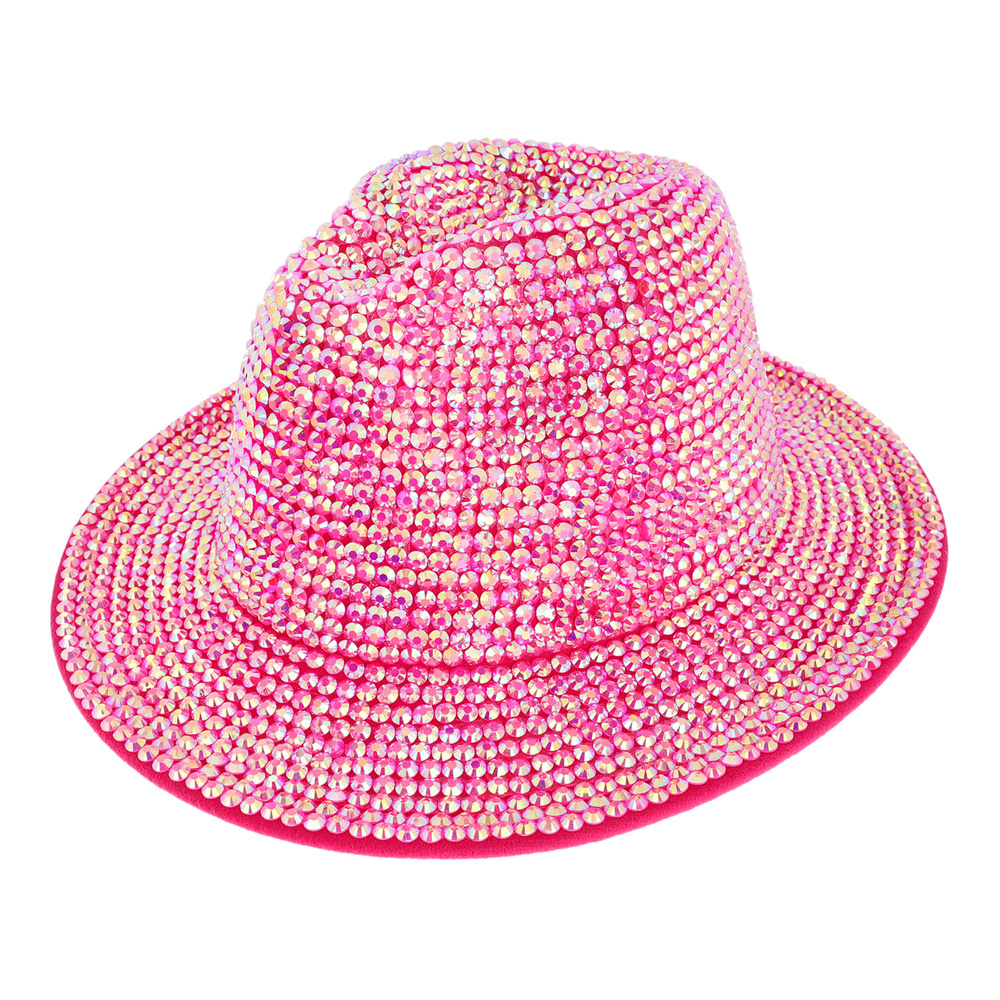 FASHION BLING RHINESTONE STUDDED WIDE BRIM FELT FEDORA HAT