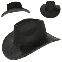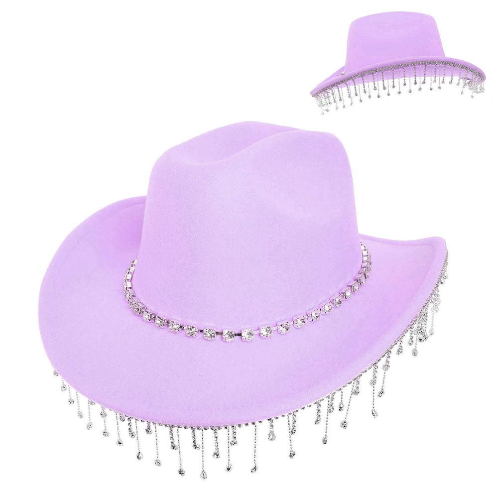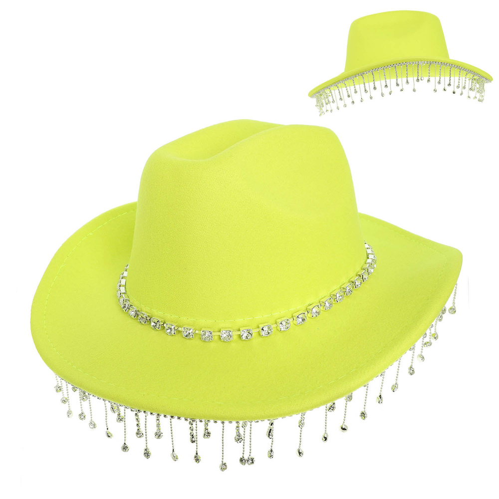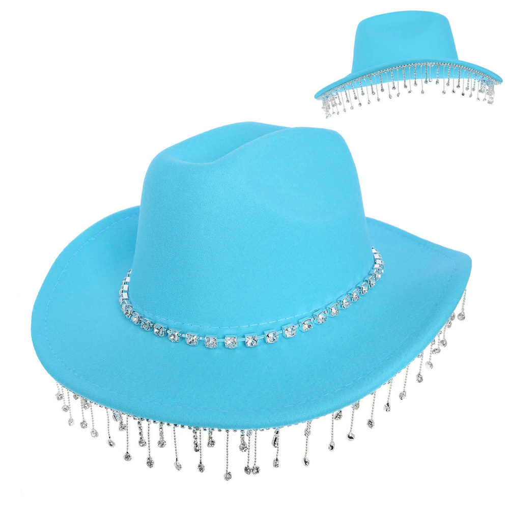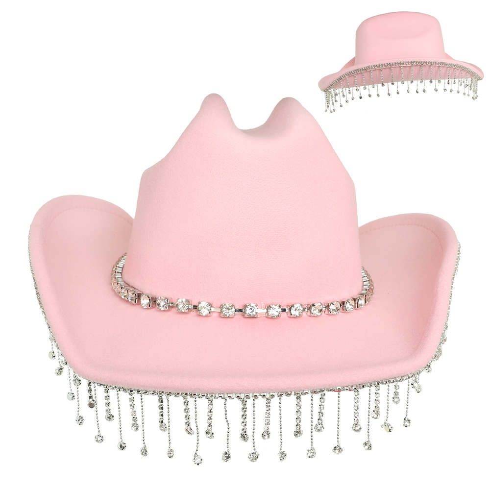 CATTLEMAN STYLED FELT COWBOY HAT WITH DECORATIVE RHINESTONES BAND AND FRINGE