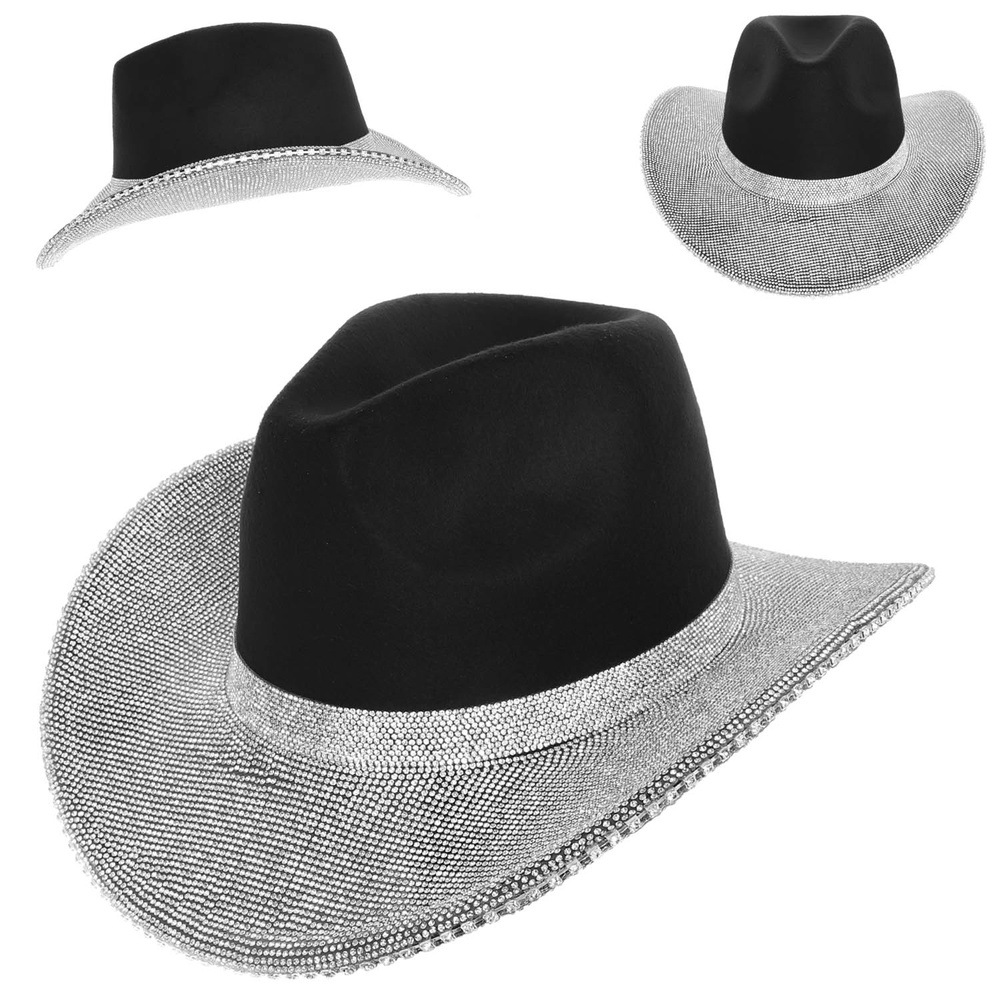 RHINESTONE EMBELLISHED POLYESTER FELT CATTLEMAN STYLED COWBOY HAT