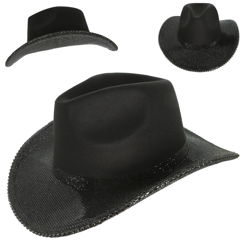 RHINESTONE EMBELLISHED POLYESTER FELT CATTLEMAN STYLED COWBOY HAT