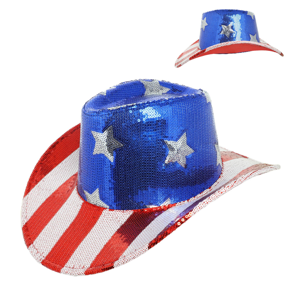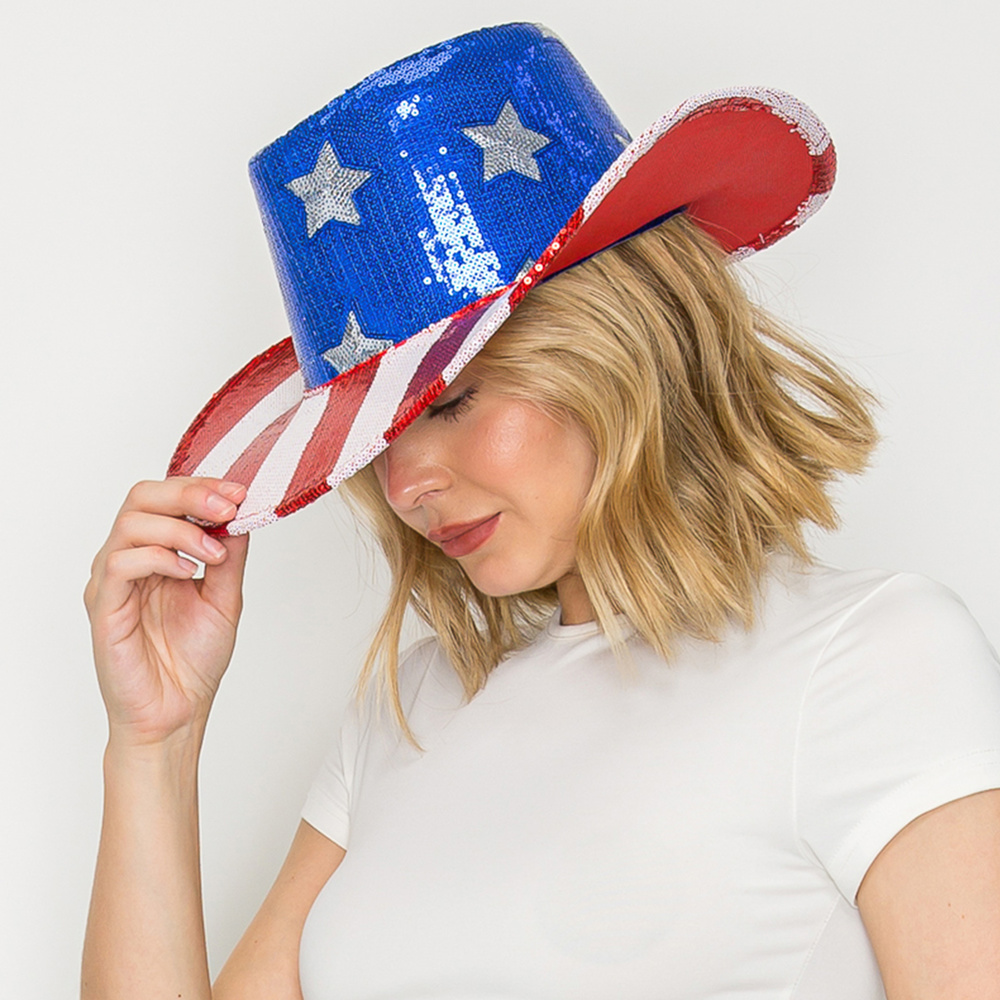 WESTERN AMERICAN FLAG SEQUINED CATTLEMAN STYLED COWBOY HAT