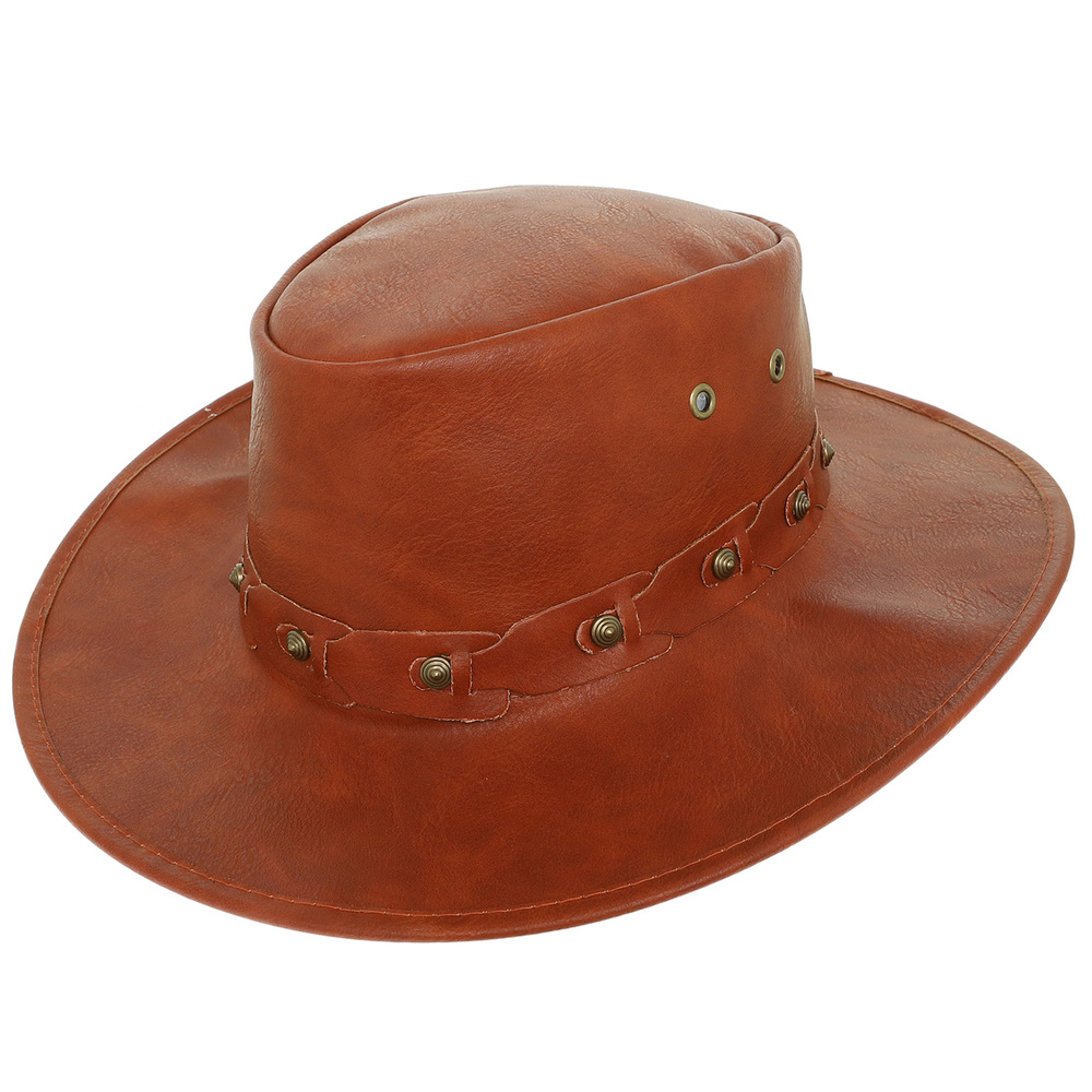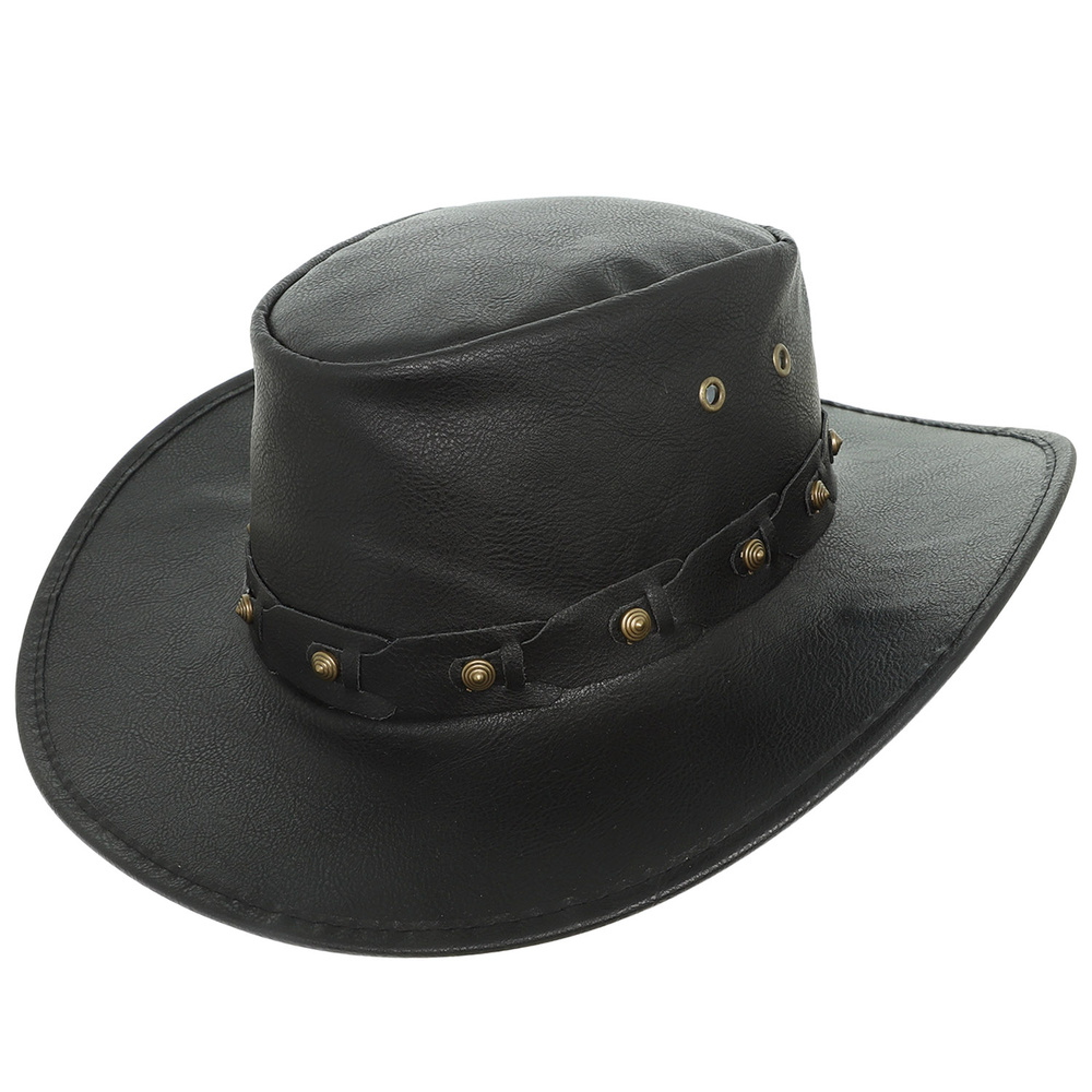 WESTERN LEATHER COWBOY HAT WITH STUDDED BAND AND VENTED SIDE DETAILS
