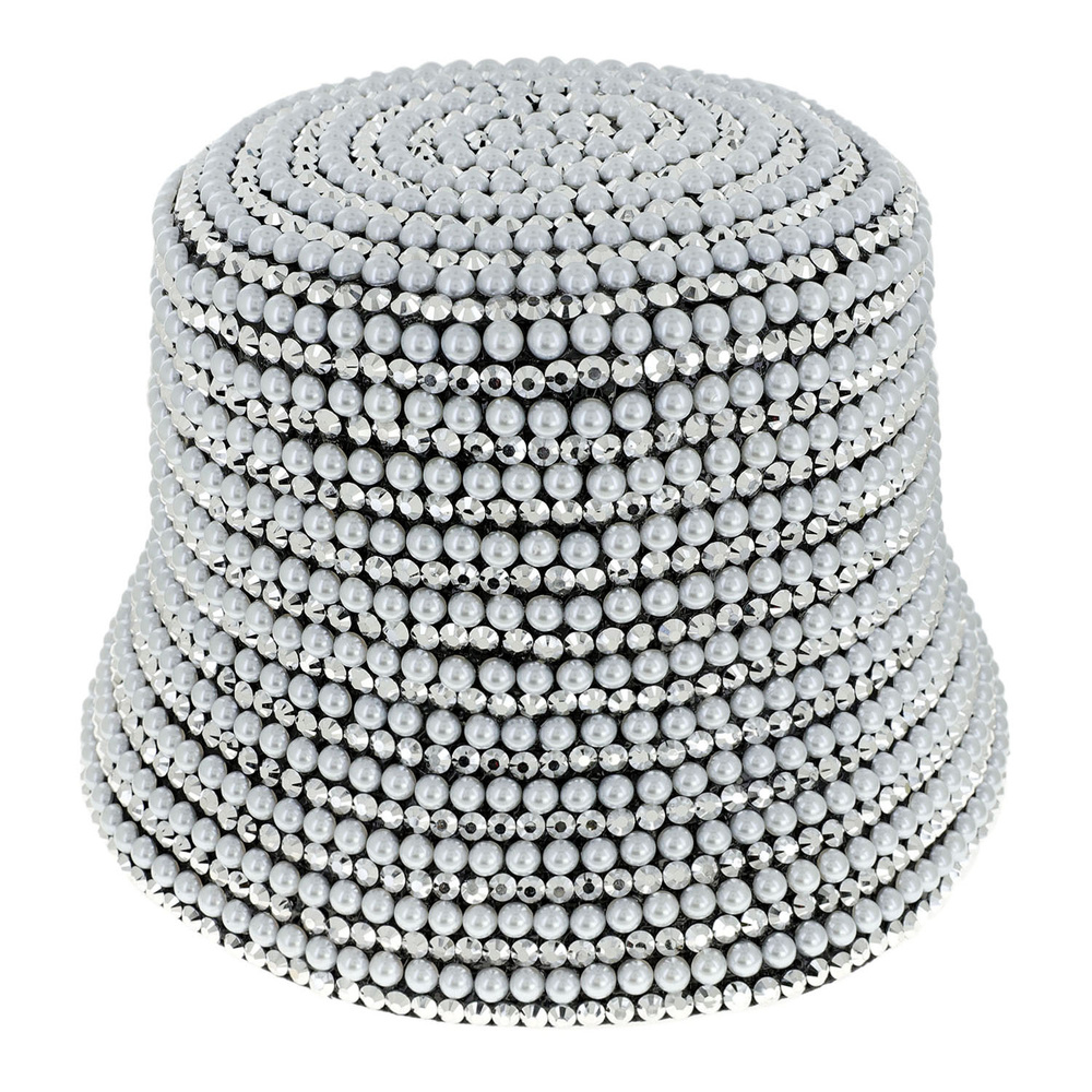 Fashion Bling Pearl And Rhinestone Studded Paper Braid Bucket Hat