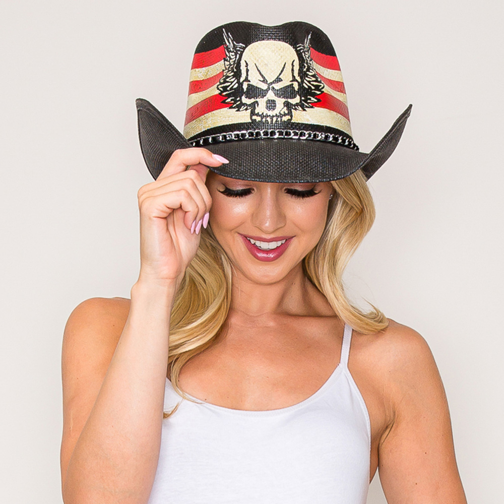 Patriotic Winged Skull Usa Flag Straw Cowboy Hat