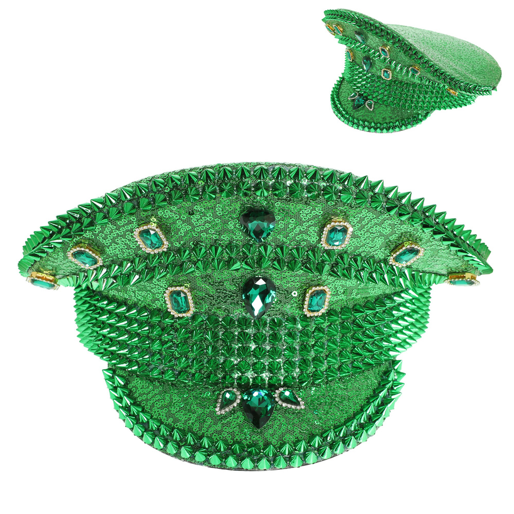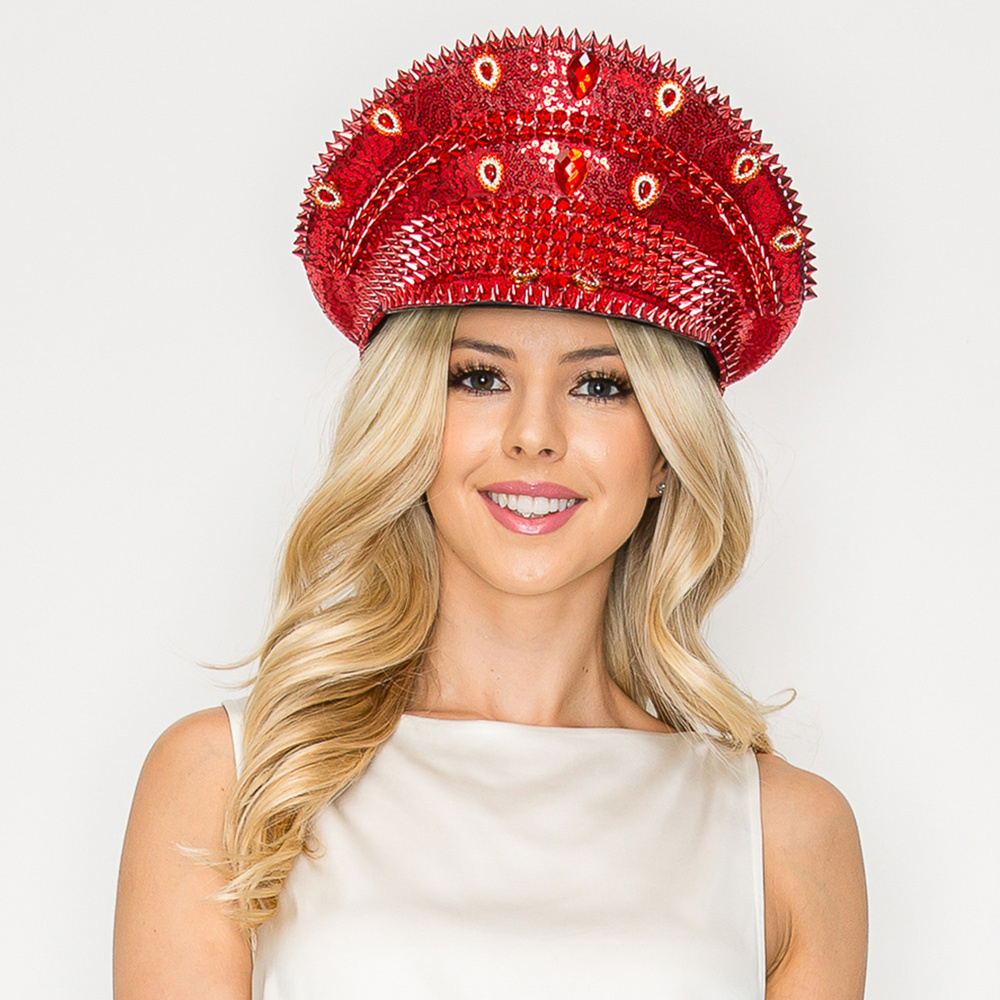 FASHION SEQUIN CRYSTAL METALLIC STUD EMBELLISHED CAPTAIN HAT