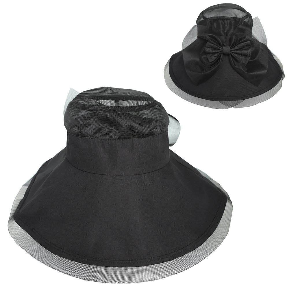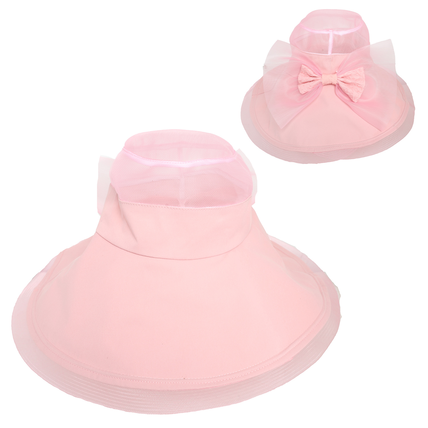 Fabric Bucket Hat With Mesh Organza Top And Bow