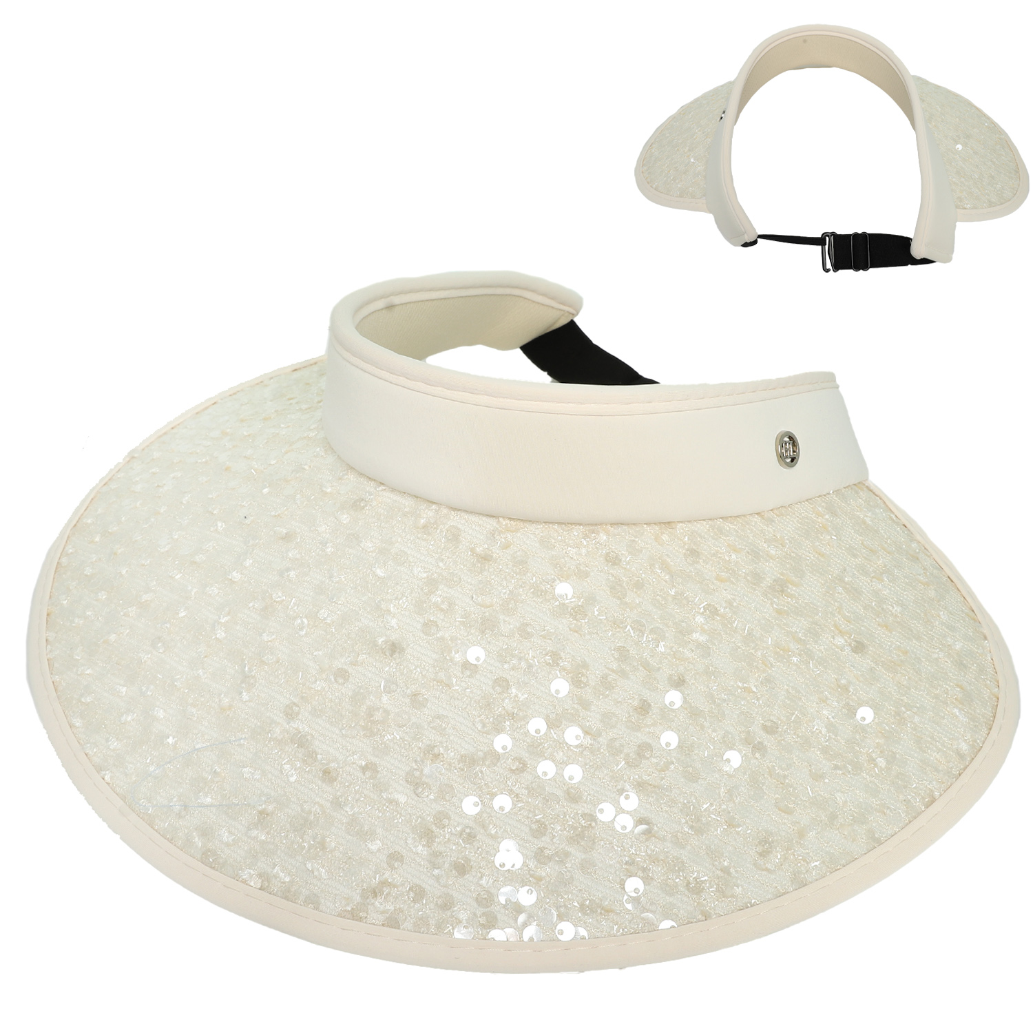 DOWN WIDE BRIM SEQUIN SUN VISOR HAT WITH STRAPBACK CLOSURE