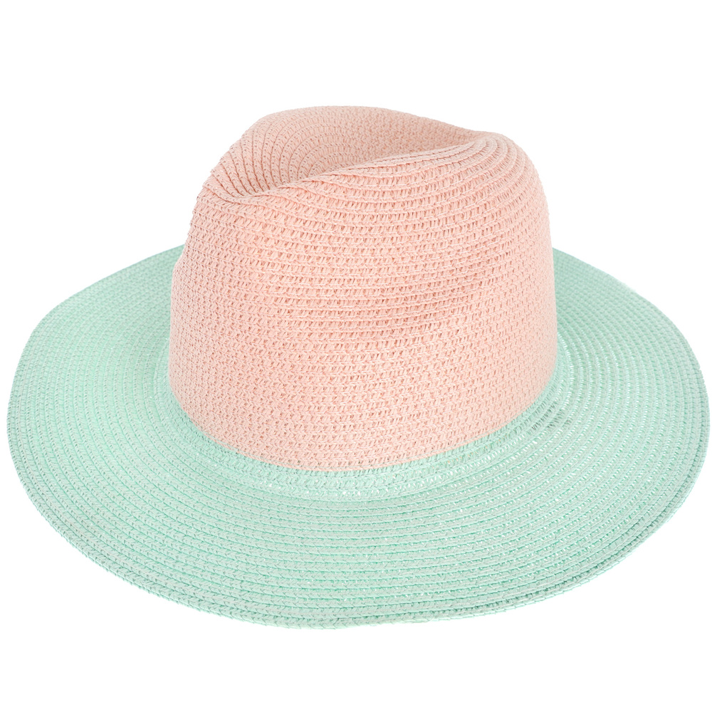 Colorblock Brim Two Tone Fedora Panama Paper Braid Hat