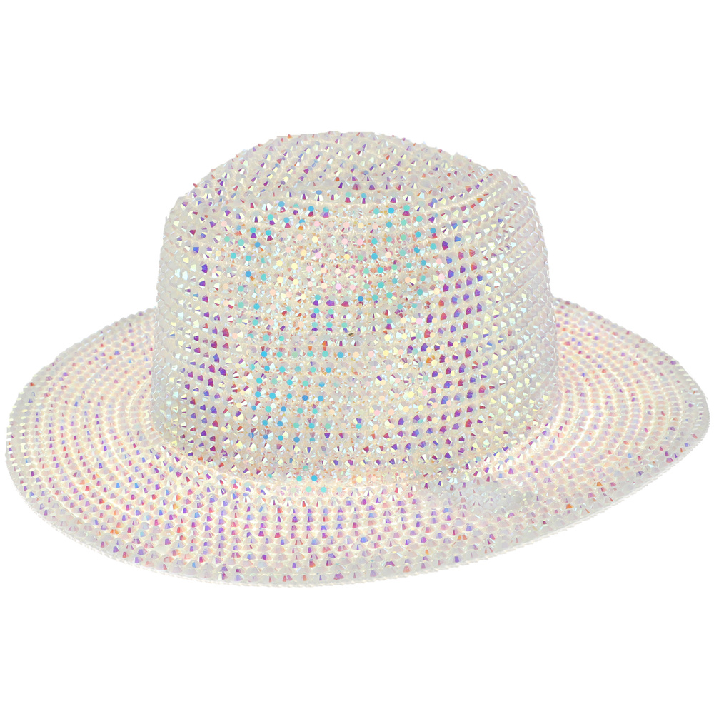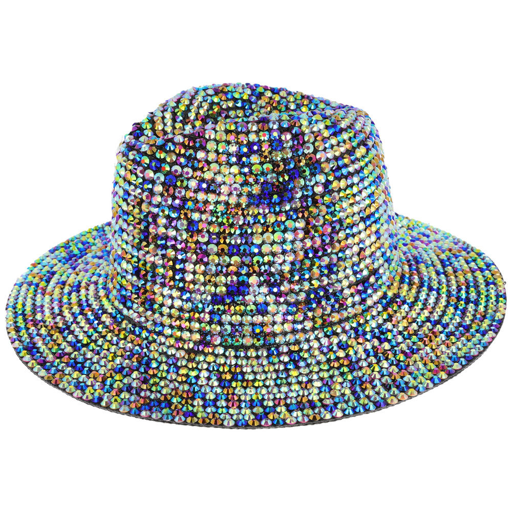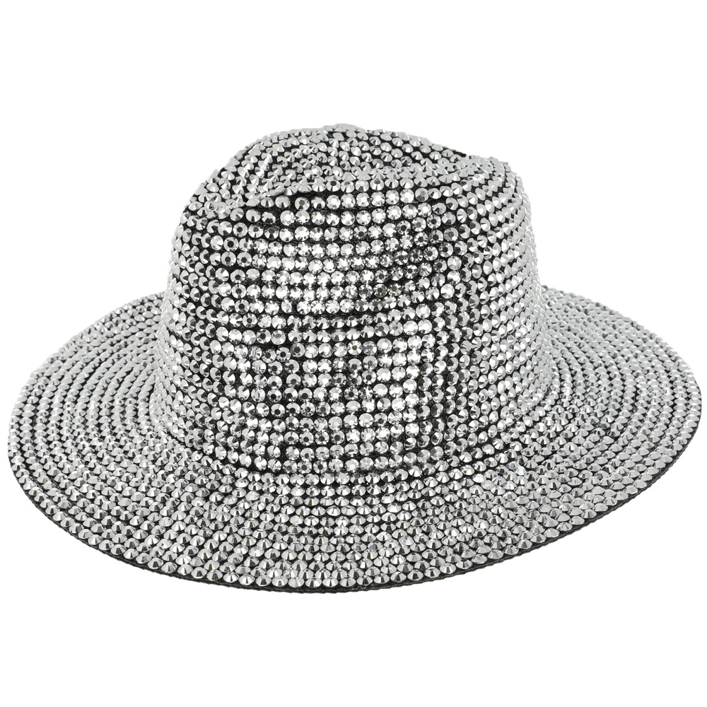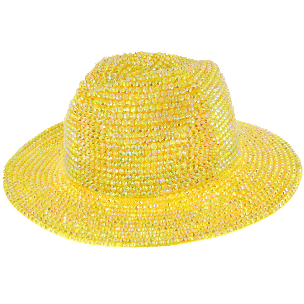 Rhinestone Studded Wide Brim Paper Braid Fedora Hat