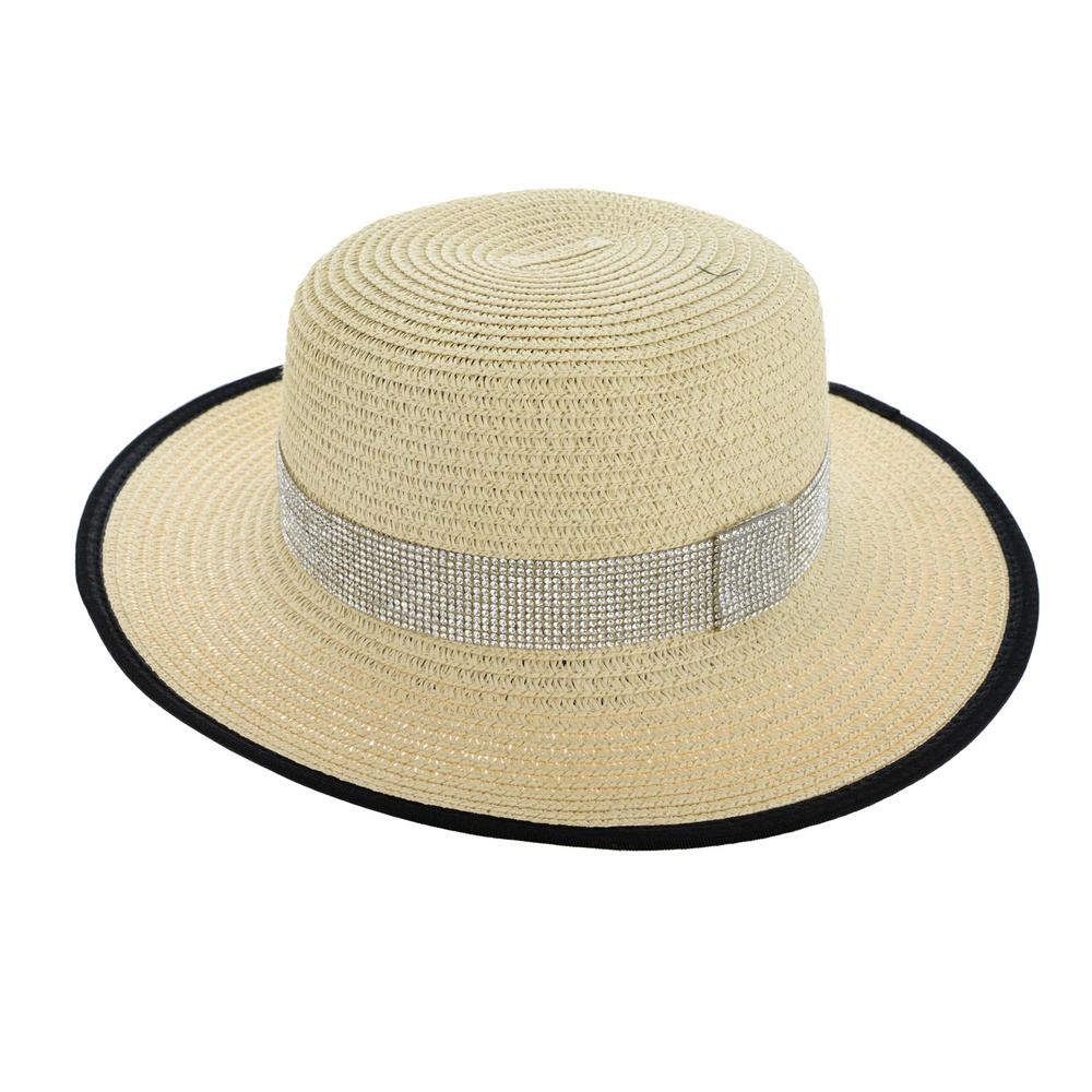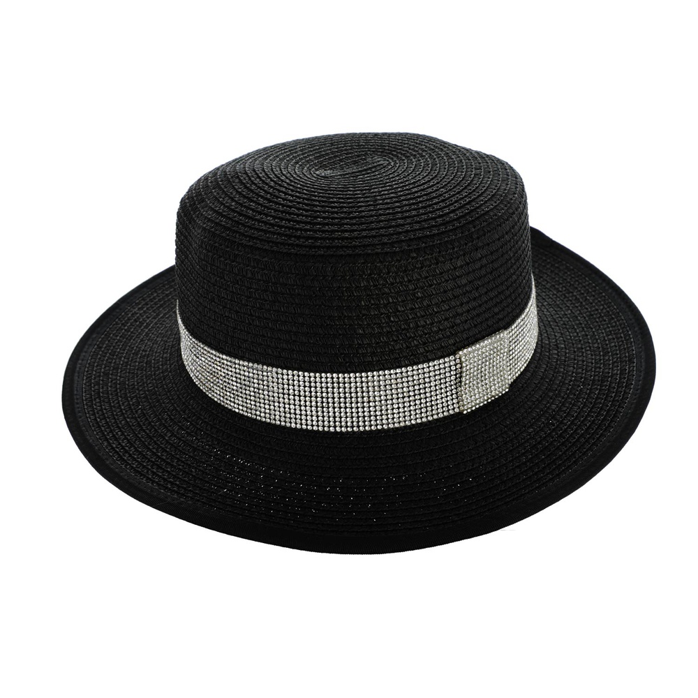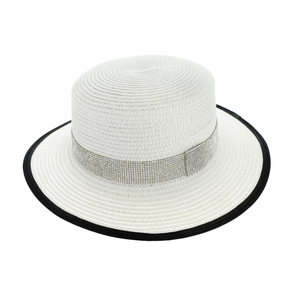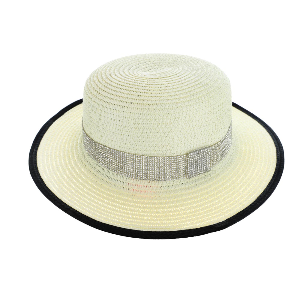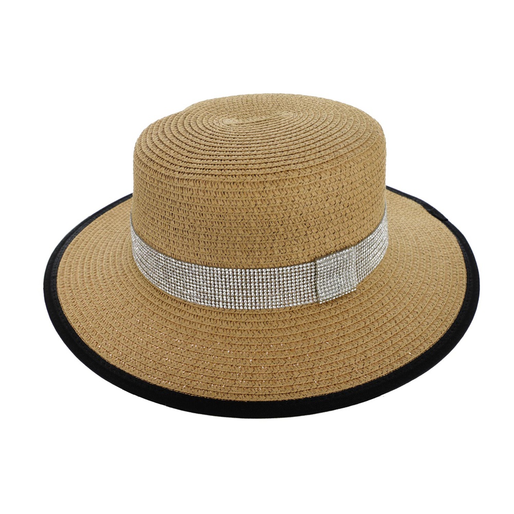 Two-tone Contrast Trim Panama Fedora Paper Braid Hat With Crystal Rhinestone Band