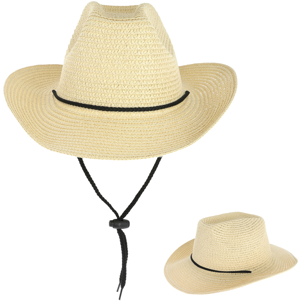BELTED WESTERN PAPER BRAID COWBOY HAT WITH ADJUSTABLE STRAP
