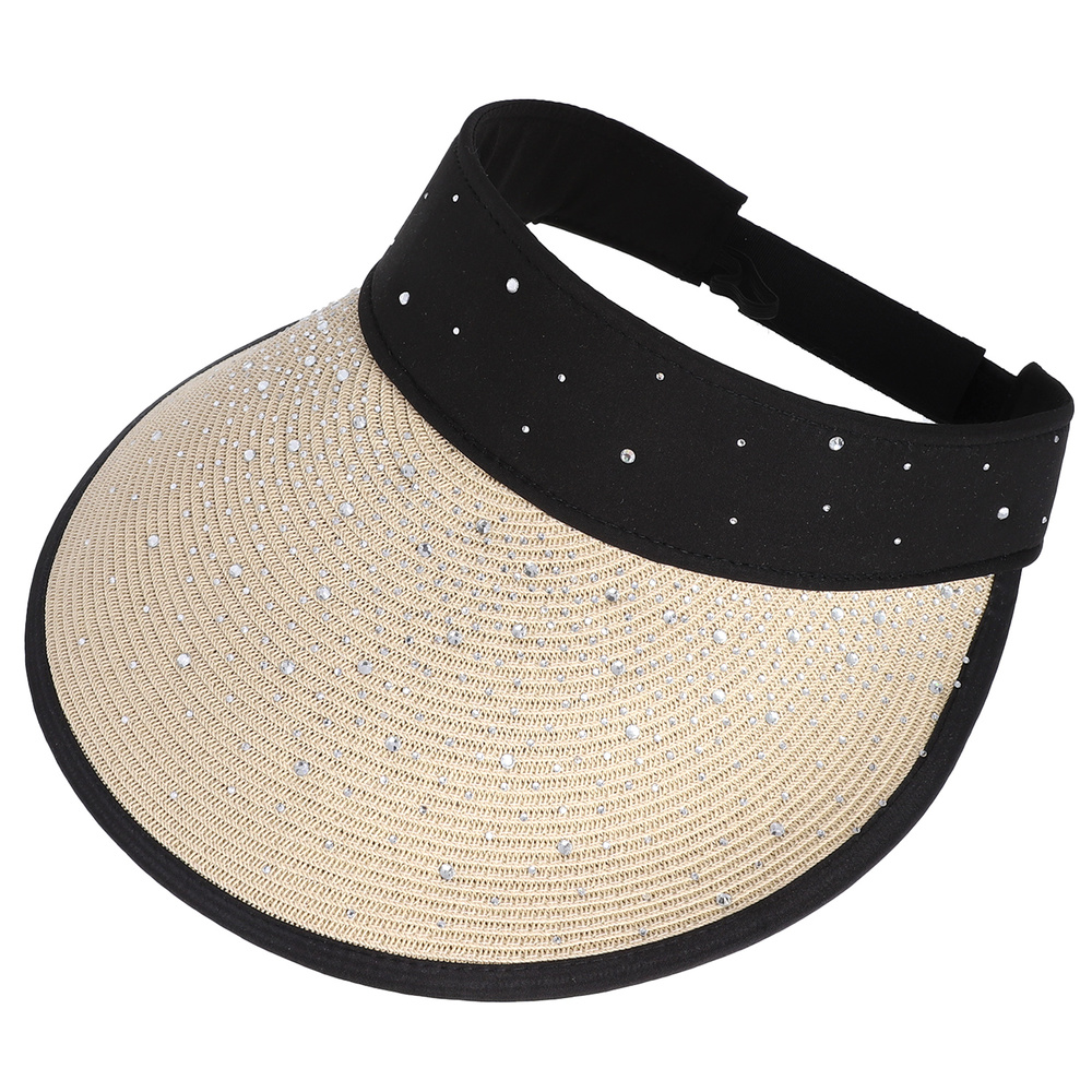 SUN UV PROTECTION CRYSTAL RHINESTONE STUDDED PAPER BRAID DECORATIVE SUMMER ONE-SIZE VISOR HAT
