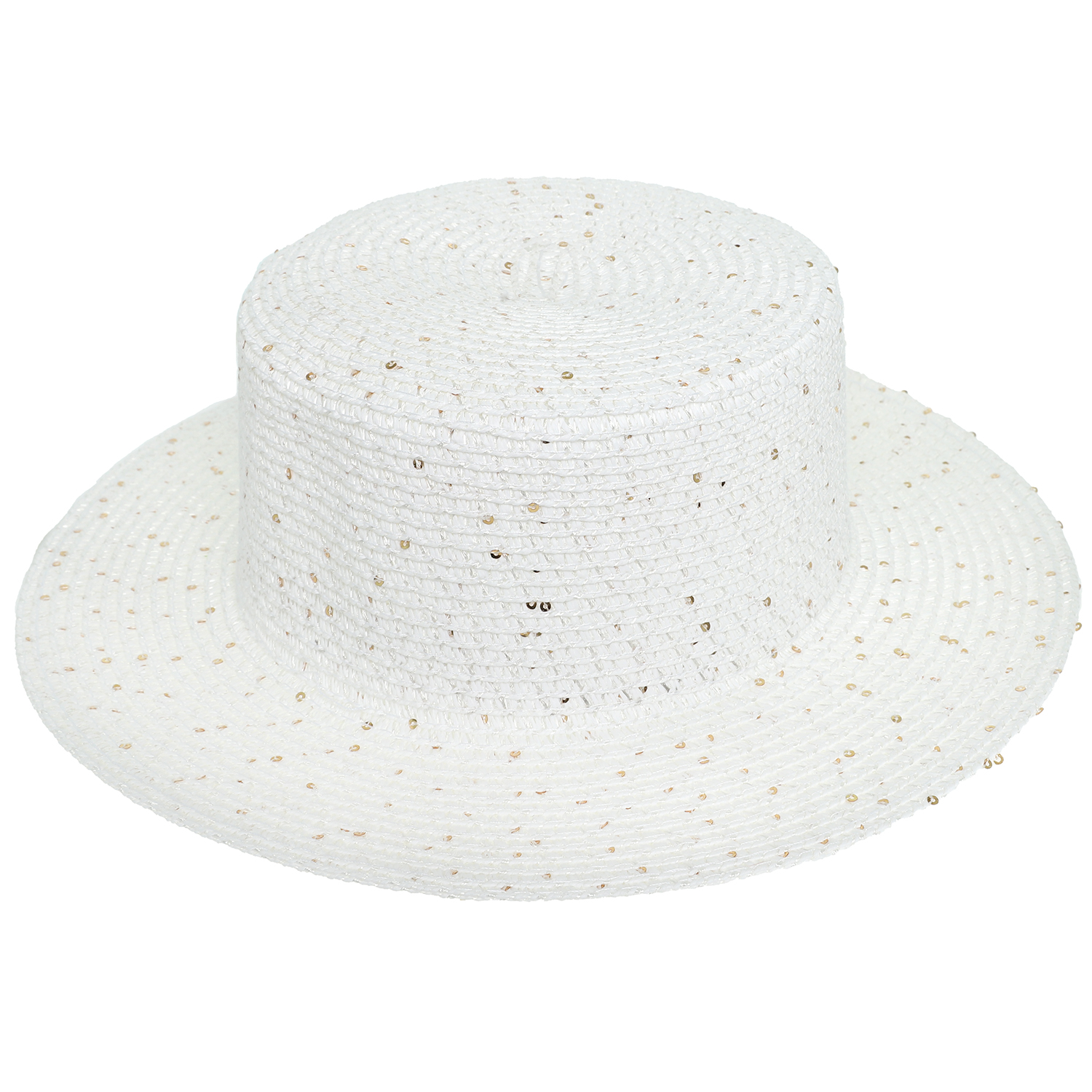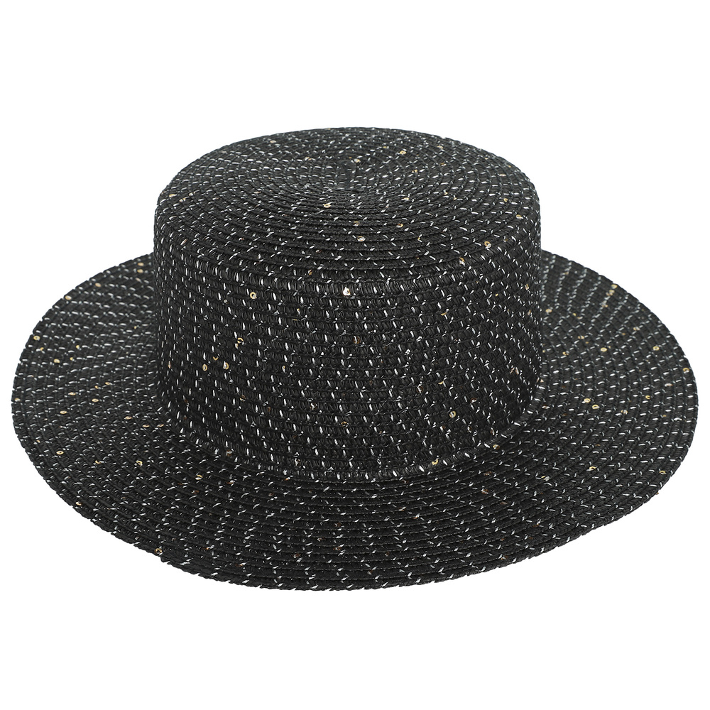 DRESSY WIDE FLAT BRIM PATTERNED WOVEN STRAW HAT WITH SEQUINS