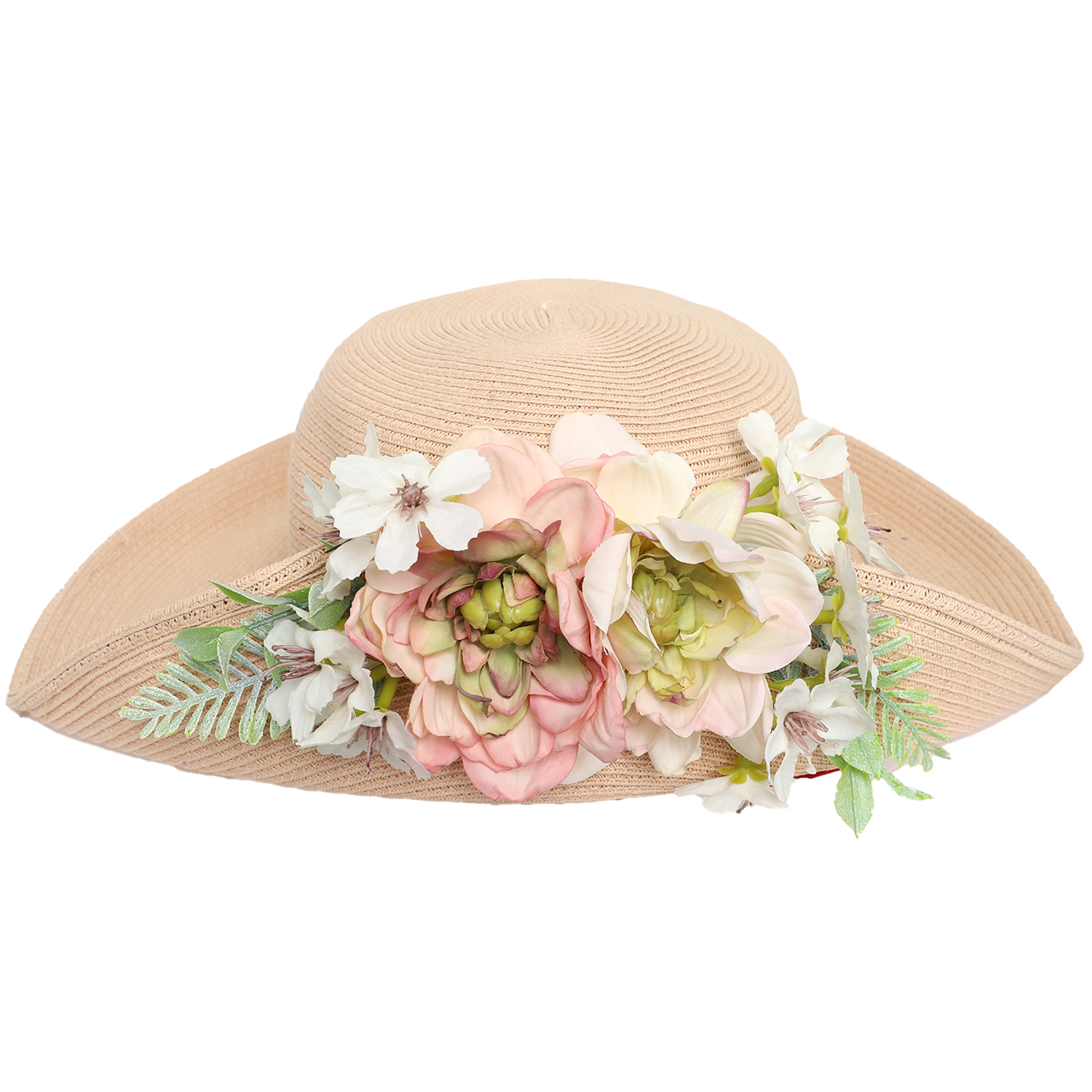 Fashion Wide Brim Flower Paper Braid Sun Hat
