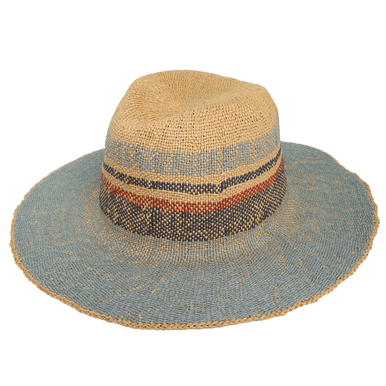 FLOPPY COLOR STRIPE WIDE BRIM STRAW WOVEN HIGH CROWN SUN HAT