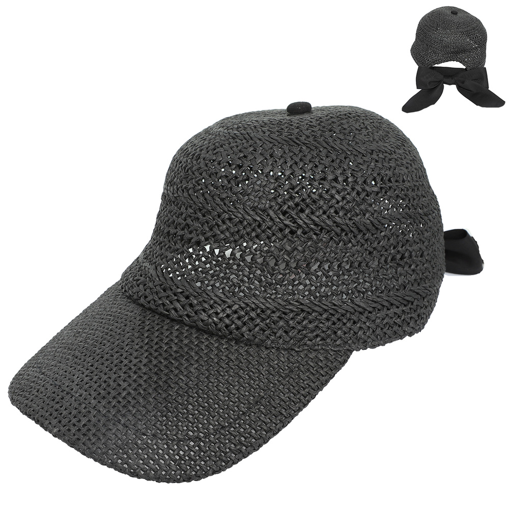 RAFFIA STRAW WOVEN BASEBALL CAP WITH BOWKNOT