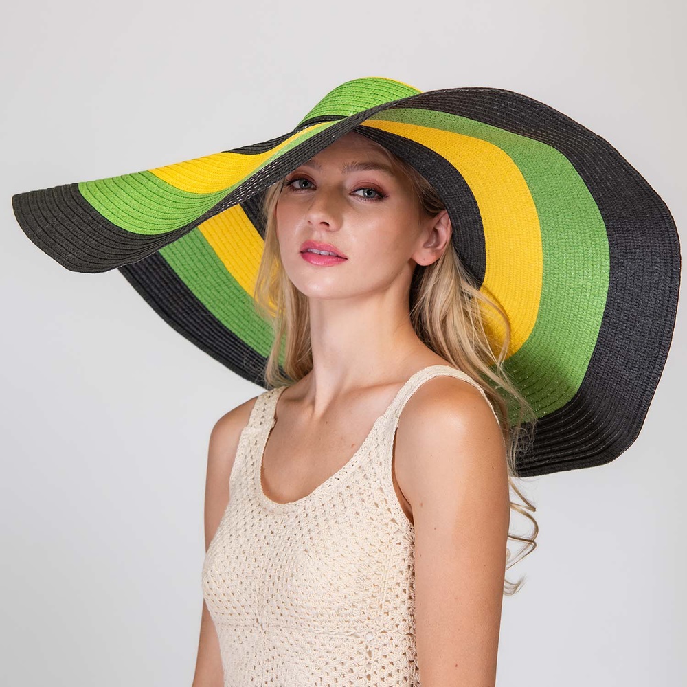FLOPPY OVERSIZED WIDE BRIM PAPER BRAID COLORFUL CONTRAST SUN HAT