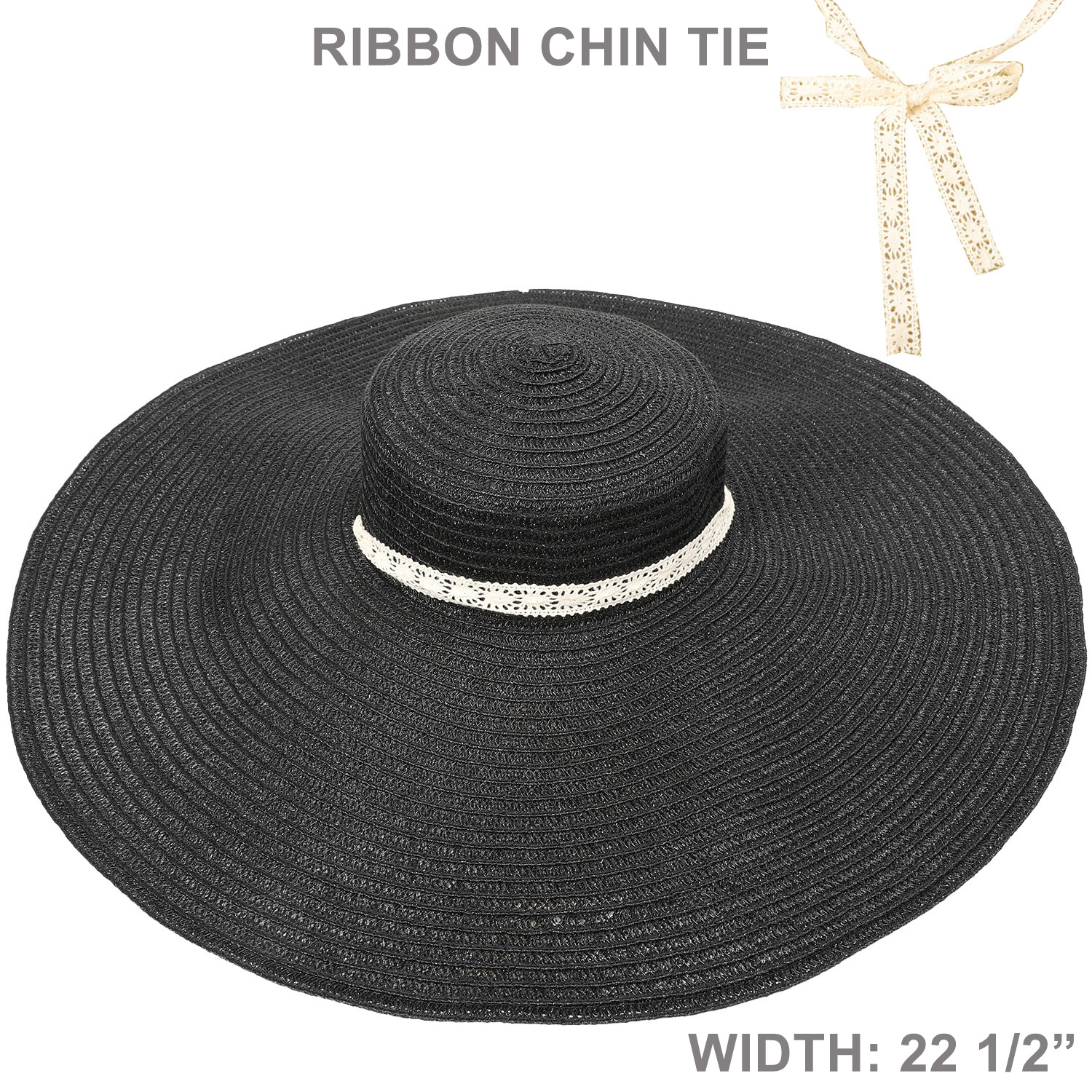 FLOPPY OVERSIZED WIDE BRIM PAPER BRAID SUN HAT WITH LACE BAND