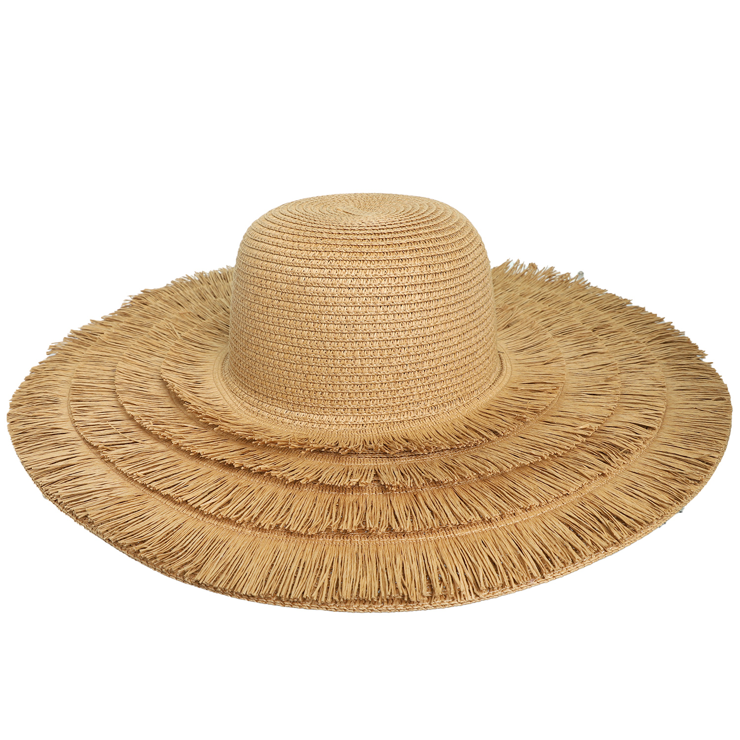 WESTERN WIDE BRIM FRINGE WOVEN PAPER BRAID SUN HAT