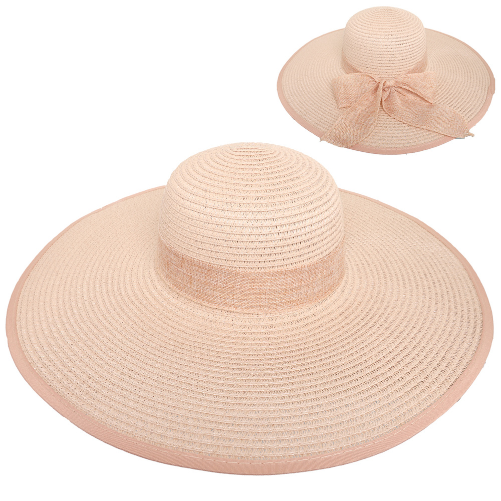 STRAW WOVEN SUN HAT WITH DECORATIVE BOWKNOT BAND