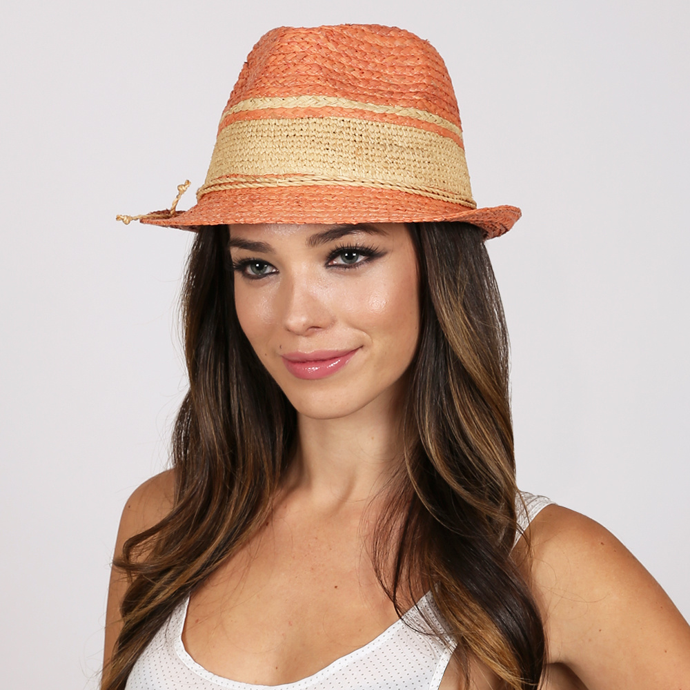 Sewn Braid Raffia Fedora With Trim Raf1356ph