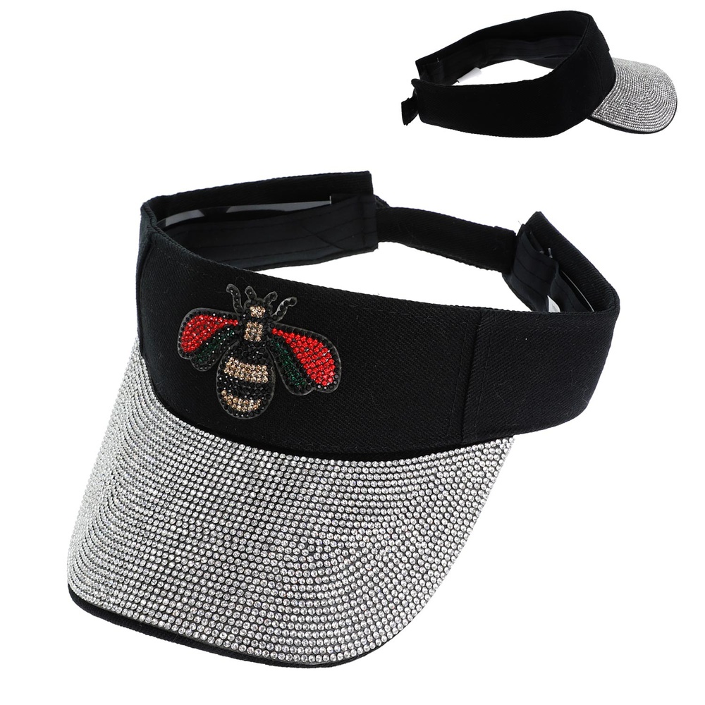 Fashionista Honey Bee Crystal Rhinestone Jeweled Graphic Sun Protective Cotton Visor