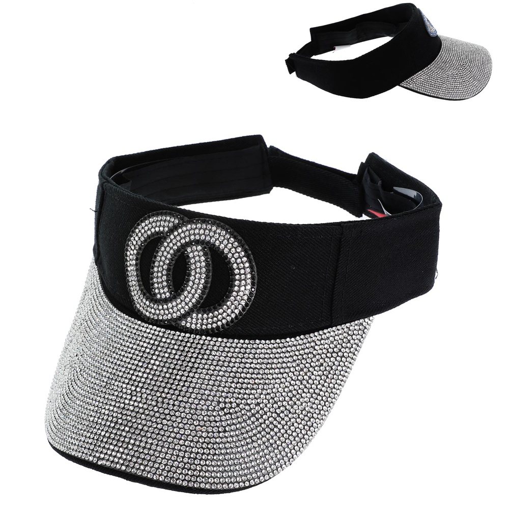 FASHIONISTA INTERLOCKING CIRCLE LINK CRYSTAL RHINESTONE JEWELED GRAPHIC SUN PROTECTIVE COTTON VISOR