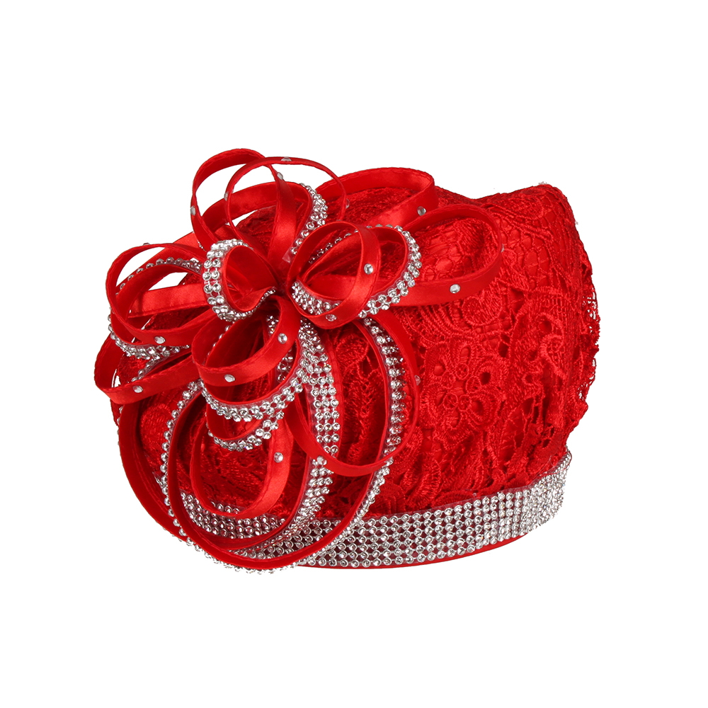Lace Beret Hat with Loopy Bow and Stone Trim