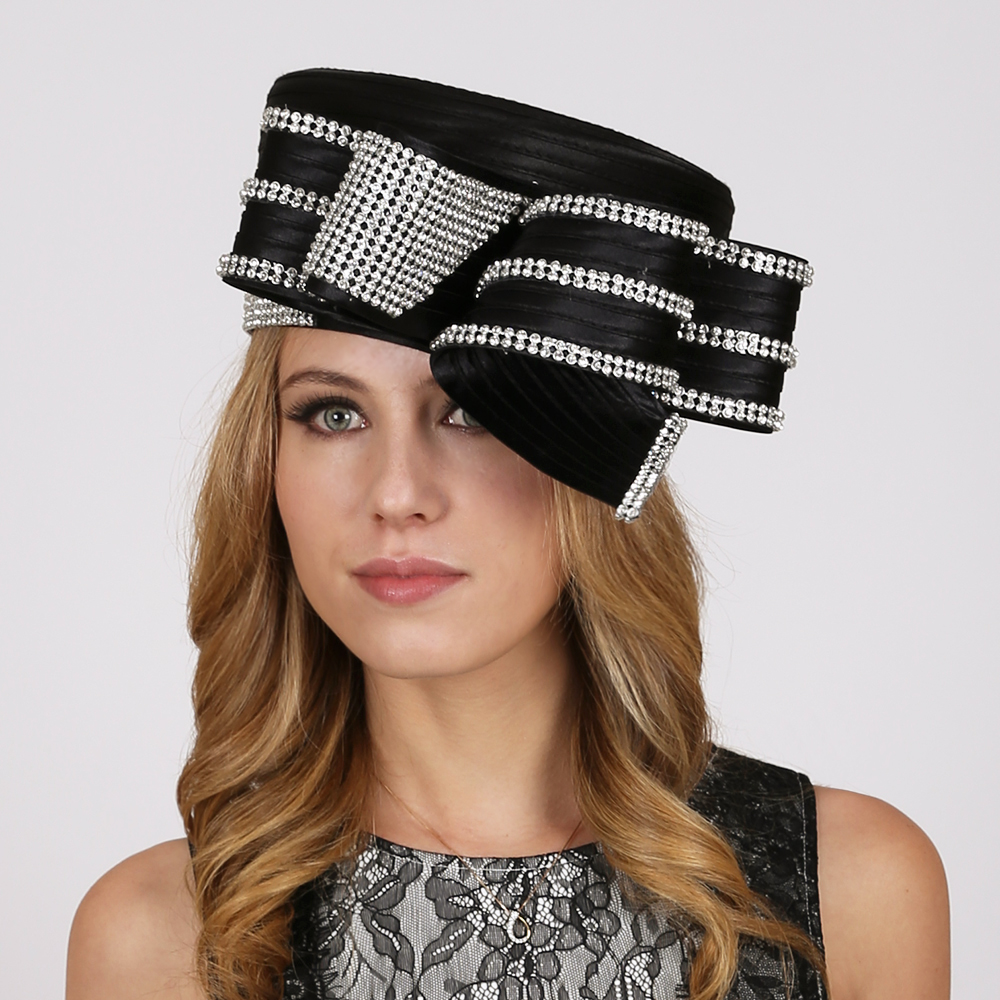 Braided Pillbox Hat With Wide Loopy Bow And Stone Trim