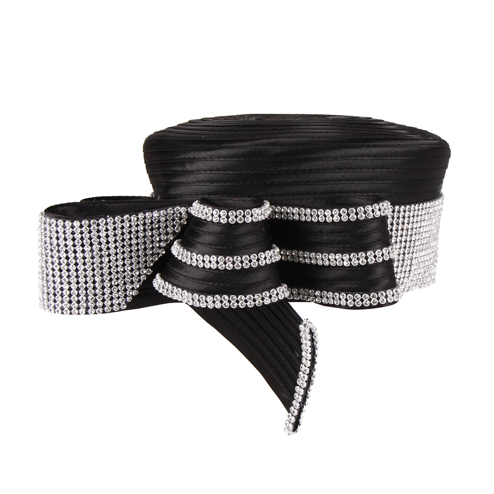 Braided Pillbox Hat With Wide Loopy Bow And Stone Trim