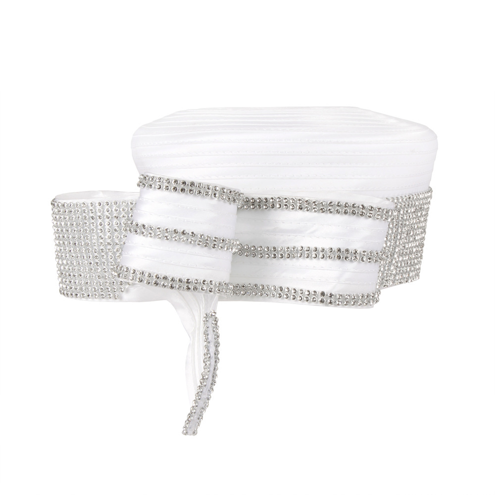 Braided Pillbox Hat with Wide Loopy Bow and Stone Trim