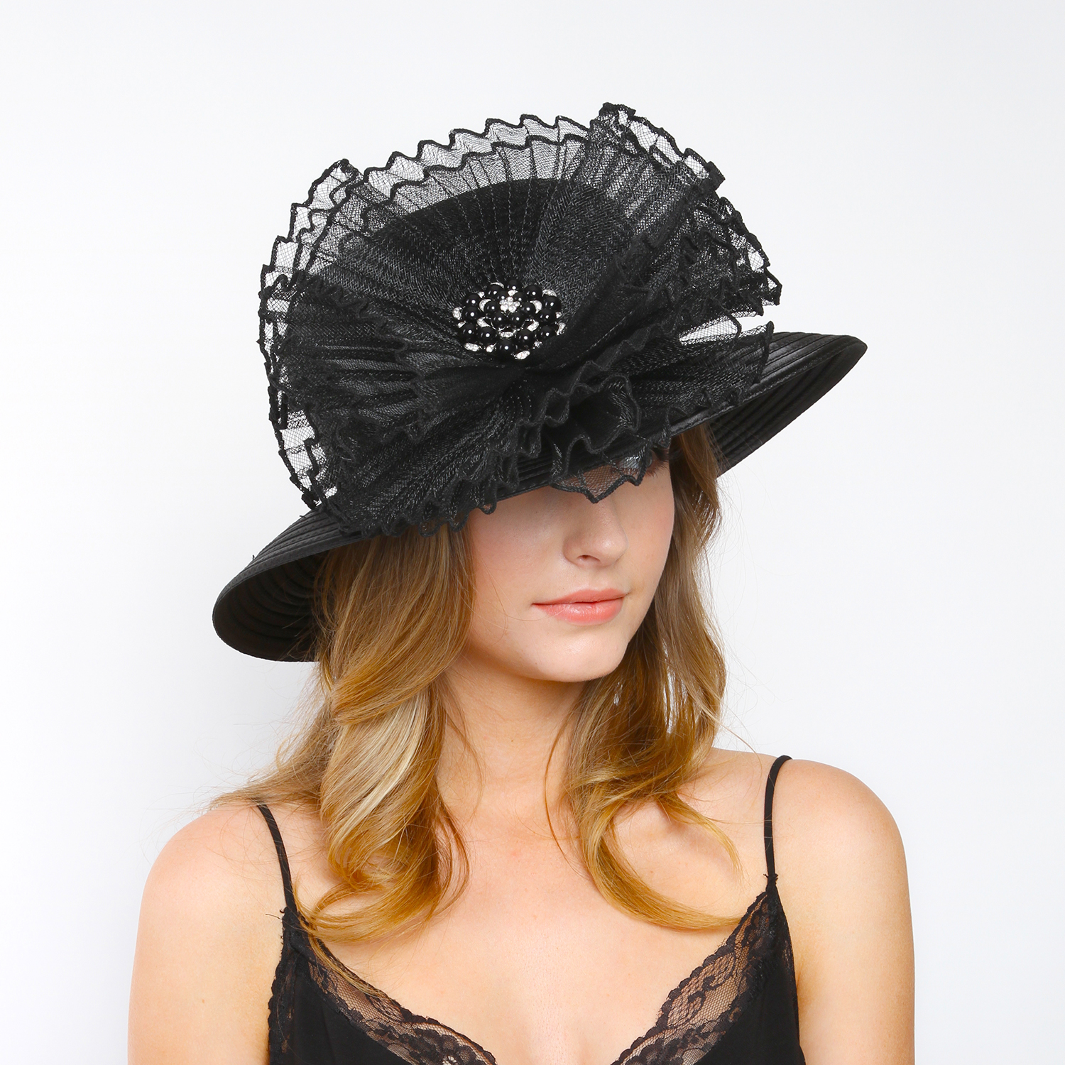 SATIN BRAID HAT WITH RUFFLE CENTER AND PEARL