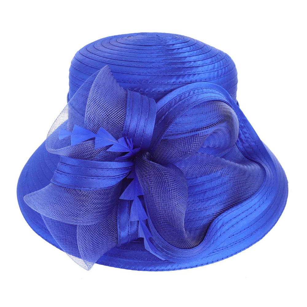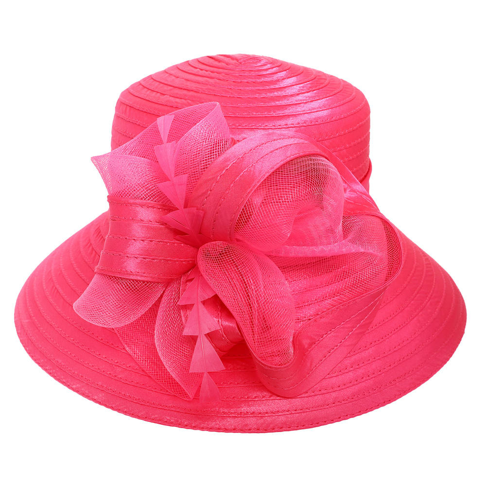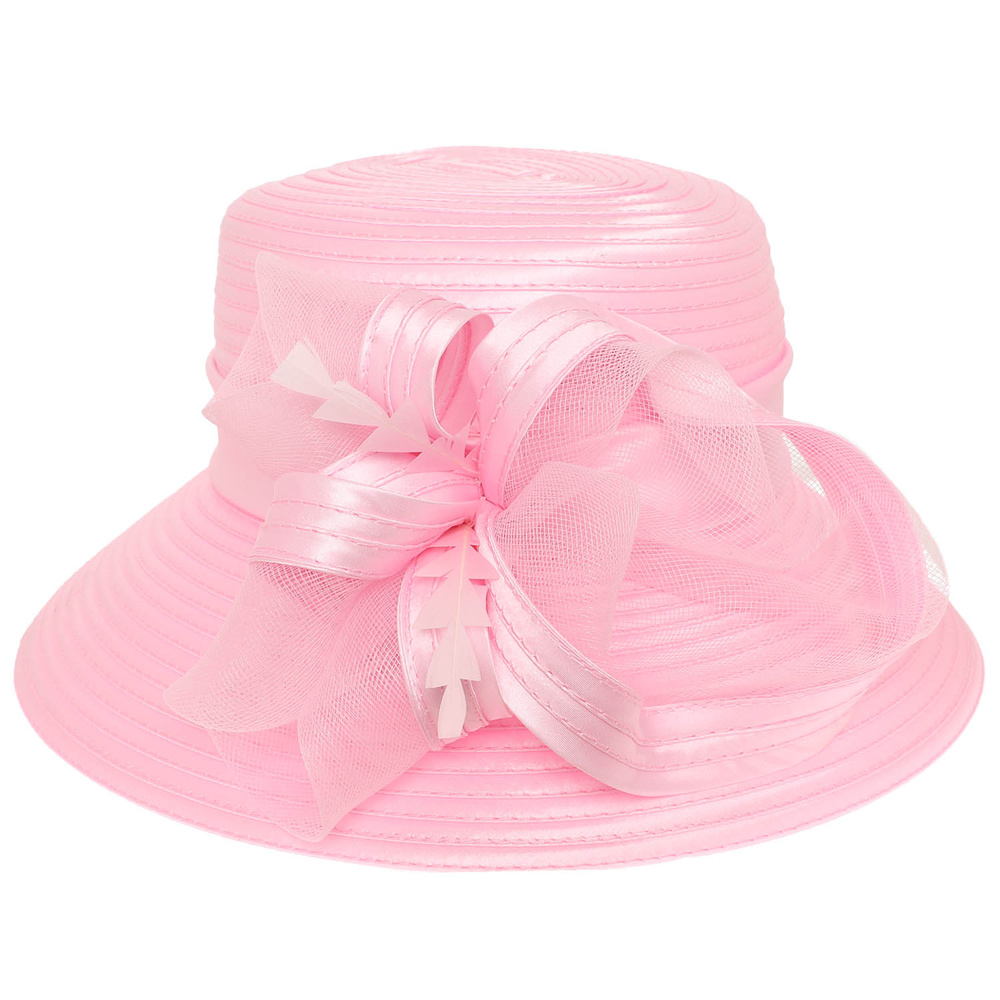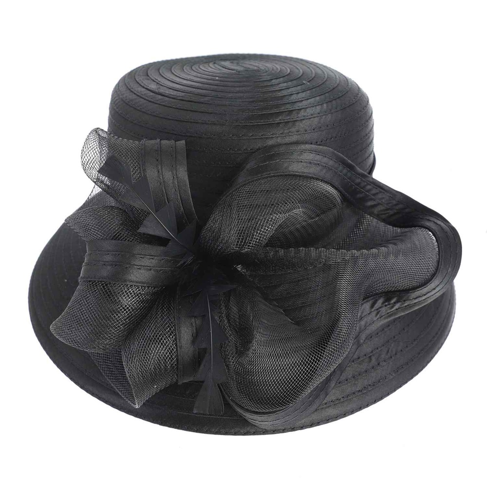Dressy Down Brim Floral Ribbon Braid Hat With Feather Accent