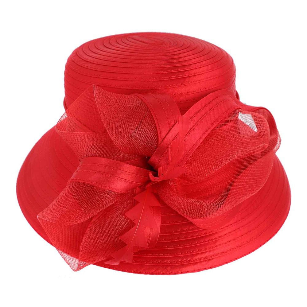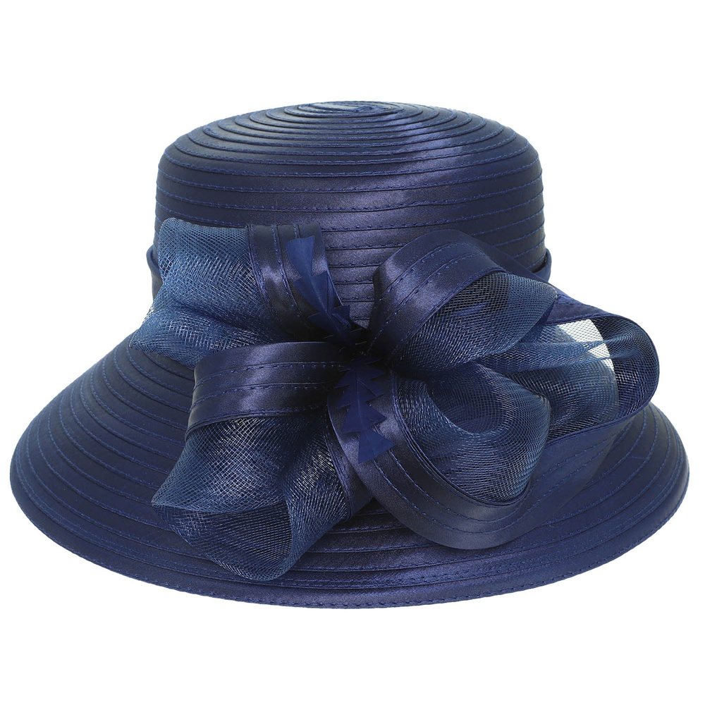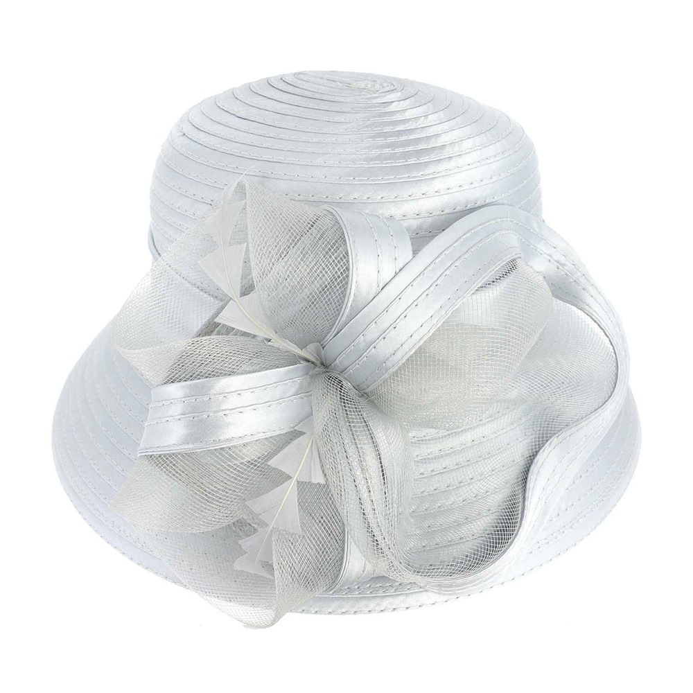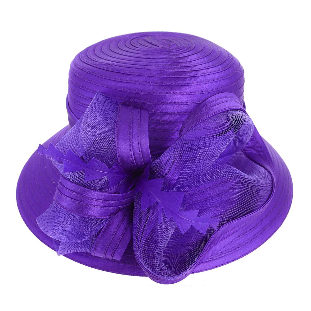 Dressy Down Brim Floral Ribbon Braid Hat With Feather Accent