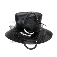 KENTUCKY DERBY SOUTHERN STYLE LARGE FEATHER BROOCH RIBBON MESH DRESSY DOWN BRIM HAT