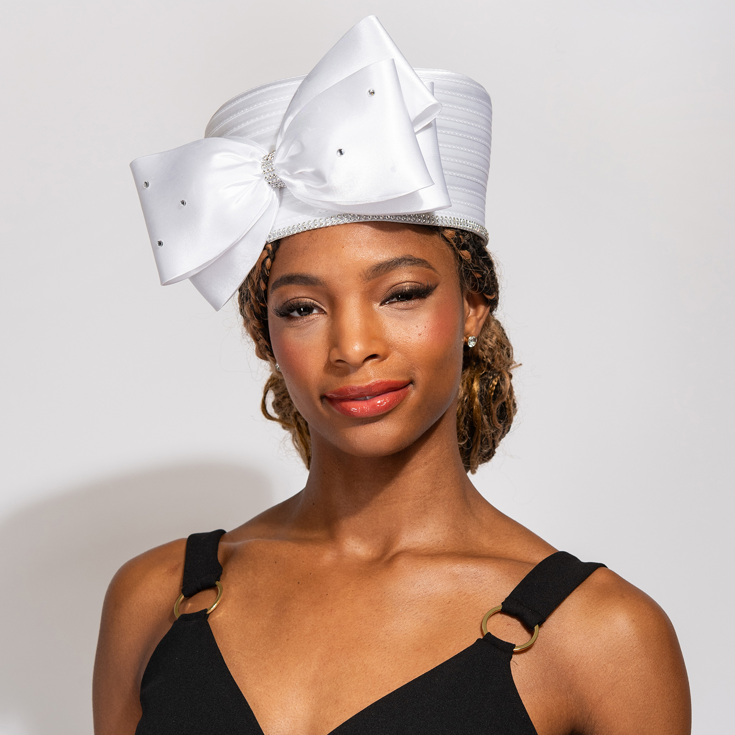RIBBON METALLIC CRYSTAL RHINESTONE PILL BOX DRESSY BRAID HAT