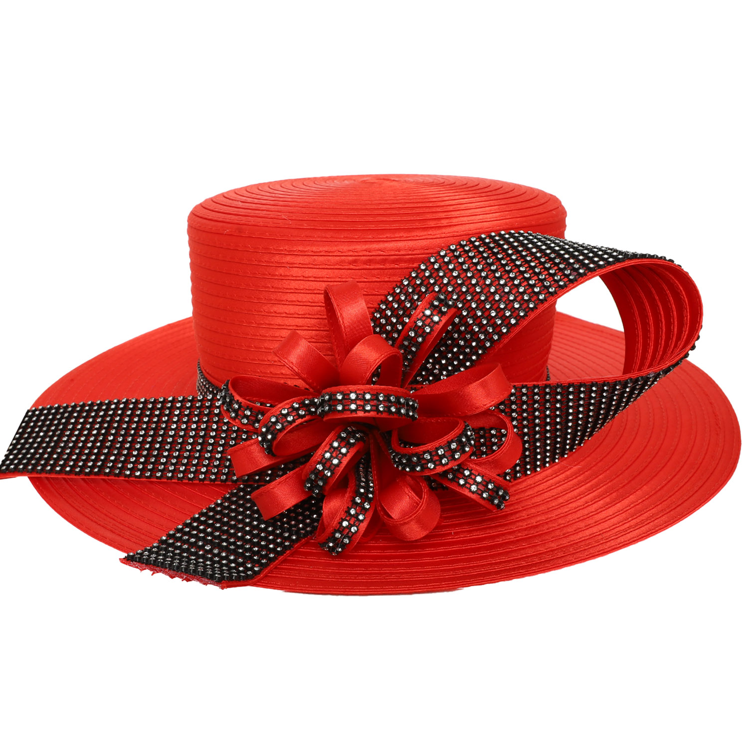 RHINESTONE EMBELLISHED LOOPY BOW ADORNED DOWN BRIM BRAID HAT