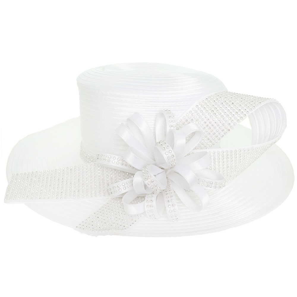 RHINESTONE EMBELLISHED LOOPY BOW ADORNED DOWN BRIM BRAID HAT