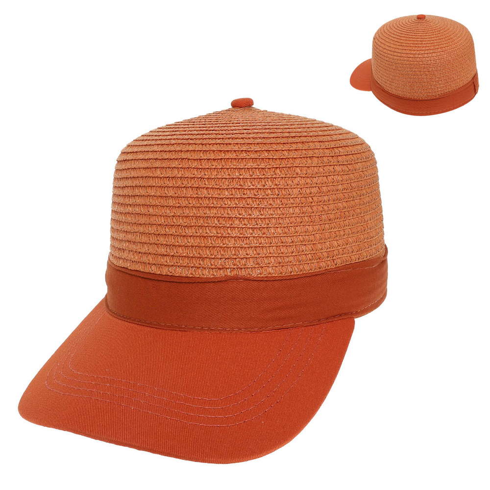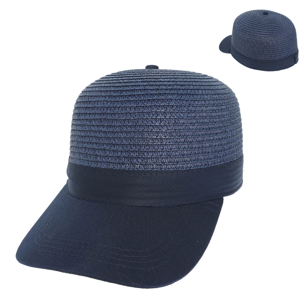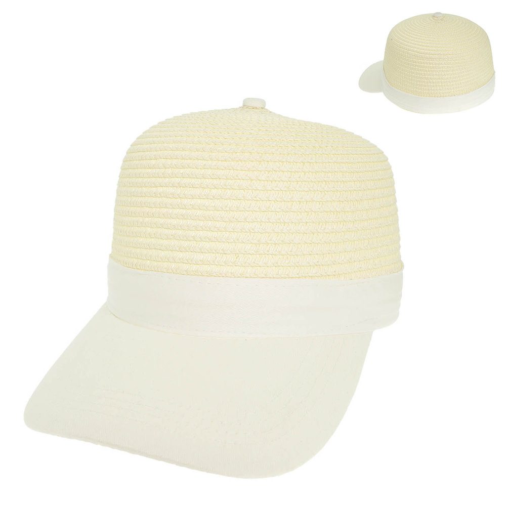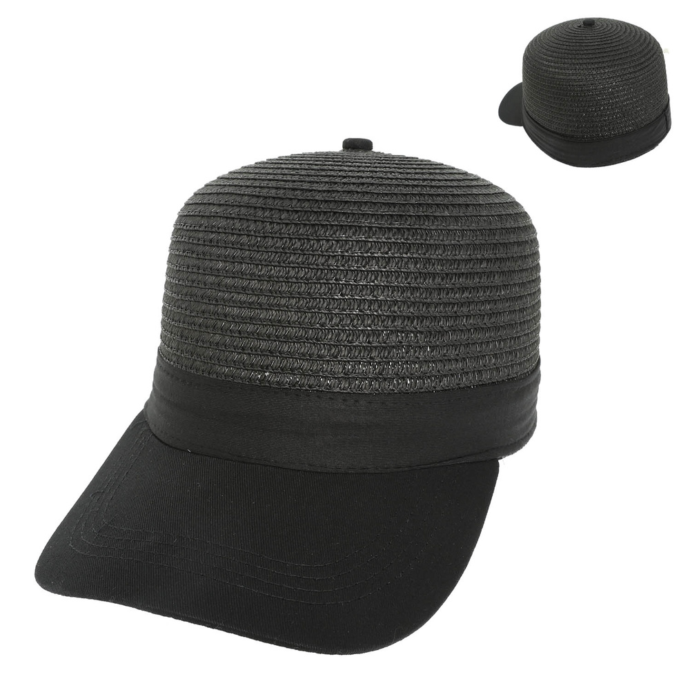 RAFFIA STYLED STRAW WOVEN PAPER BRAID BASEBALL CAP WITH FABRIC BRIM