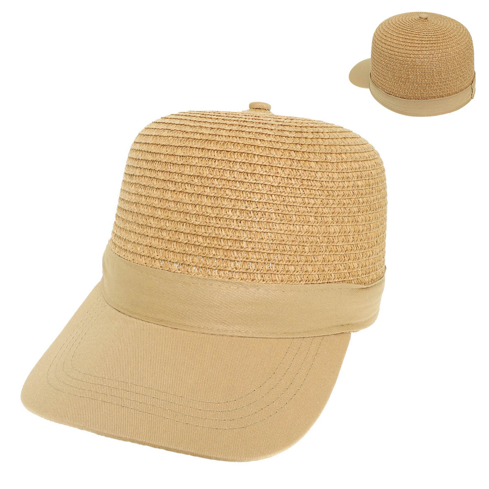RAFFIA STYLED STRAW WOVEN PAPER BRAID BASEBALL CAP WITH FABRIC BRIM