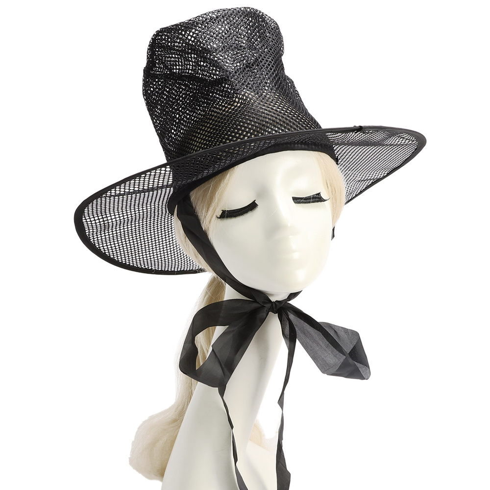 KOREAN BLACK MESH GAT STYLE HAT WITH DECORATIVE ORGANZA RIBBON TIE INSPIRED BY HANBOK KPOP FASHION