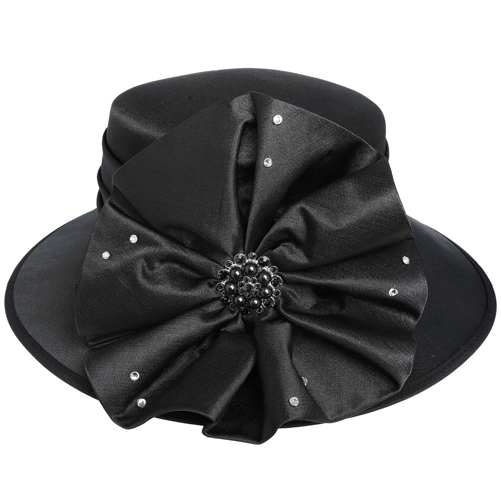 Floral Down Brim Brooch Accent Dressy Braid Hat