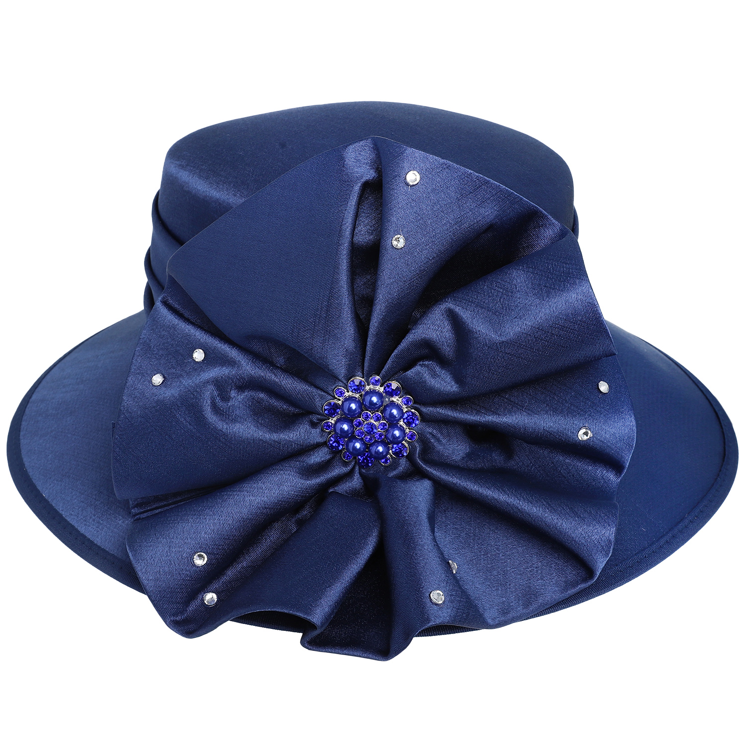 SUNDAY BEST KENTUCKY DERBY SOUTHERN STYLE CRYSTAL STUDDED BROOCH ACCENT FLORAL DOWN BRIM HAT DRESSY BRAID HAT