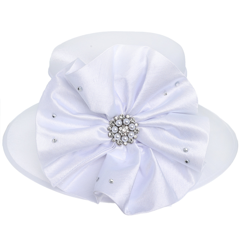 SUNDAY BEST KENTUCKY DERBY SOUTHERN STYLE CRYSTAL STUDDED BROOCH ACCENT FLORAL DOWN BRIM HAT DRESSY BRAID HAT