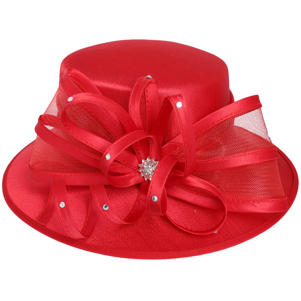SUNDAY BEST KENTUCKY DERBY SOUTHERN STYLE CRYSTAL STUDDED BROOCH ACCENT LARGE BOW RIBBON DOWN BRIM DRESSY BRAID HAT