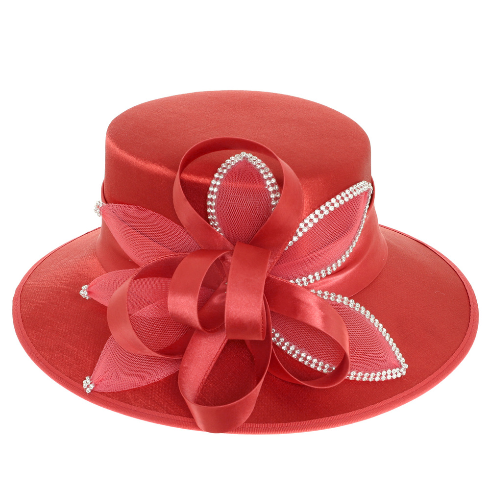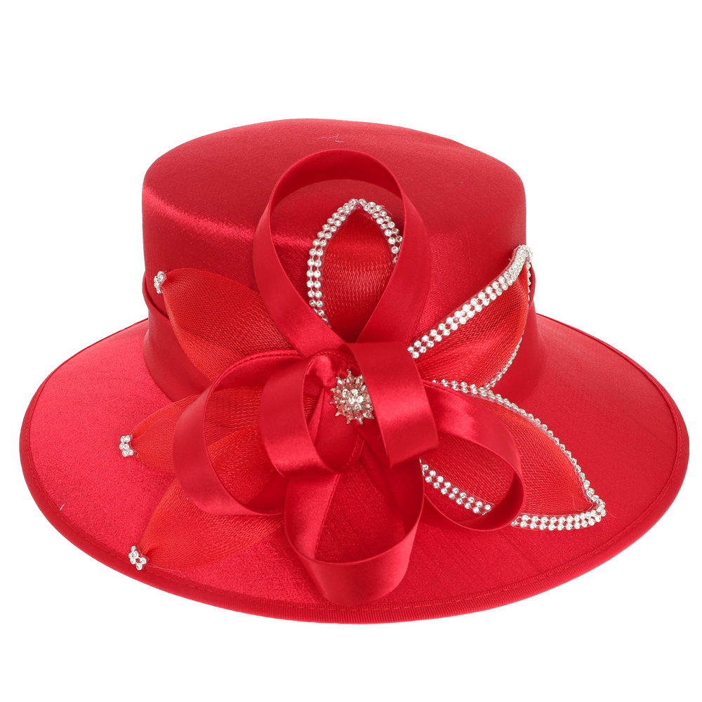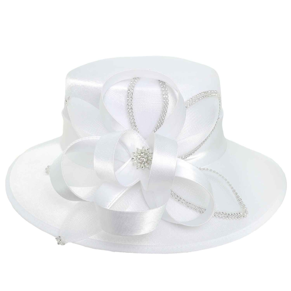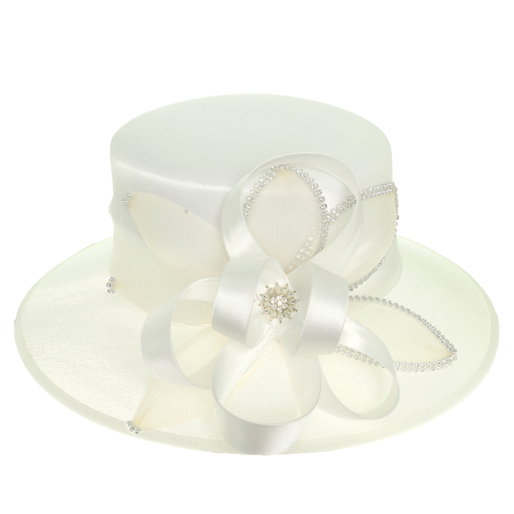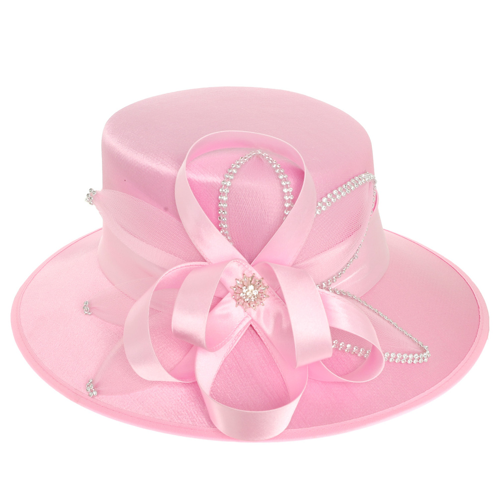CRYSTAL RHINESTONE EMBELLISHED SPIRAL LOOPY BOW SATIN BRAID HAT