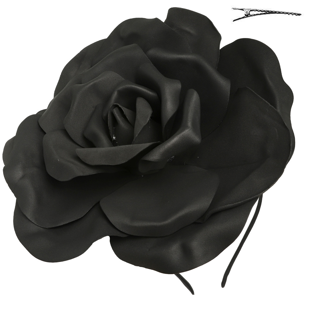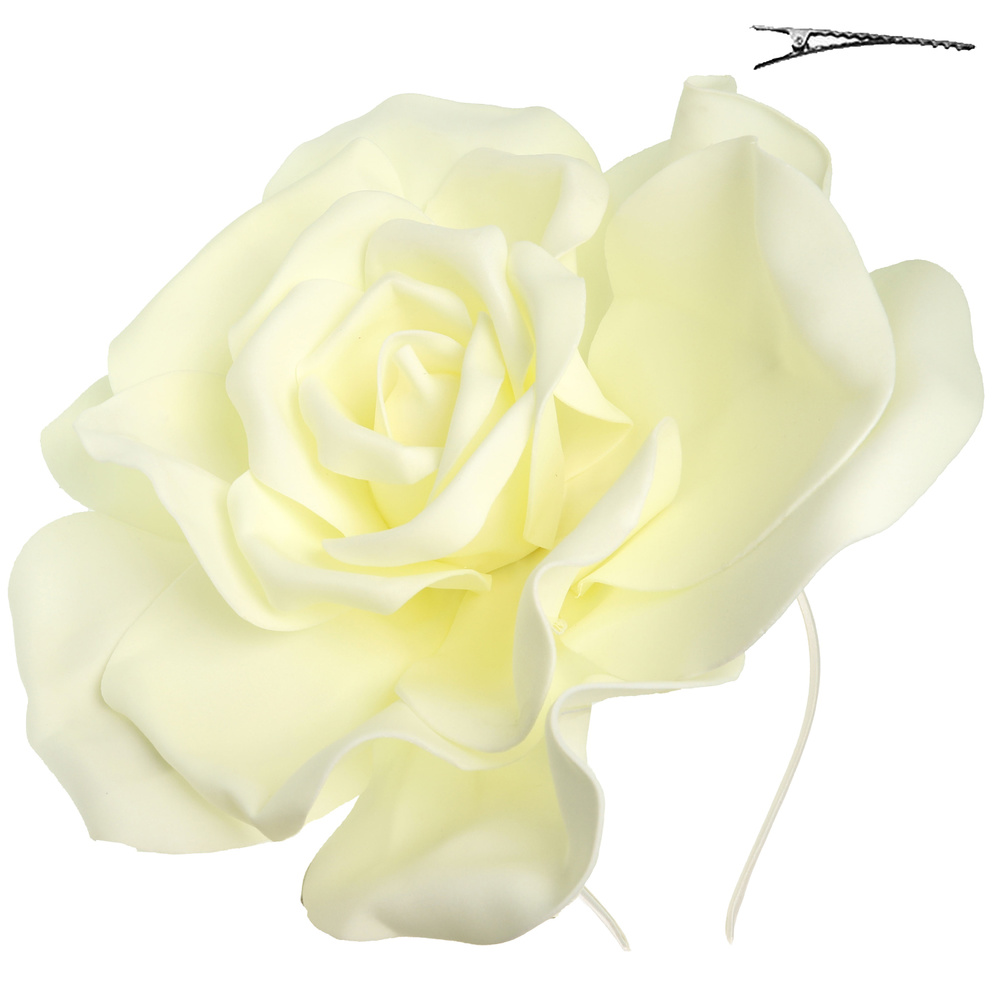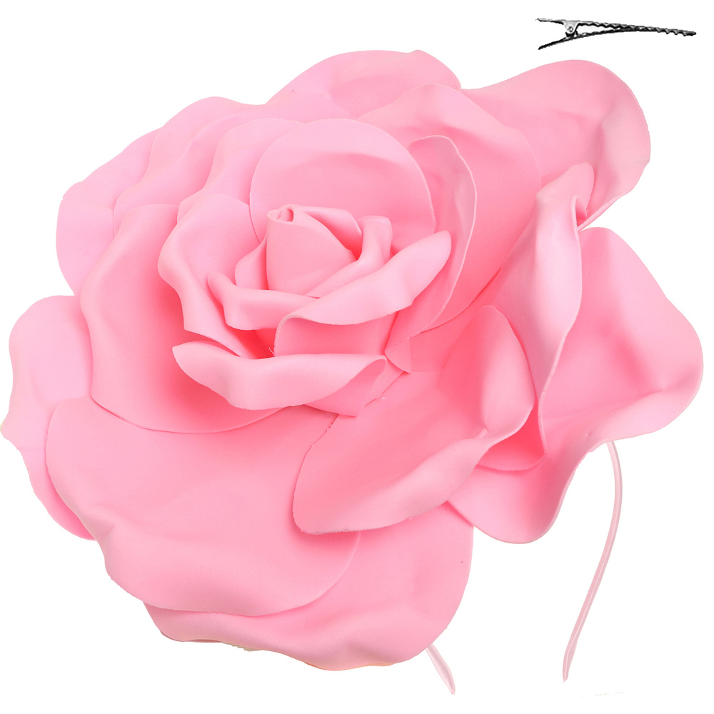 FLOWER FASCINATOR HEADBAND FEATURING ROSE DESIGN IN VIBRANT COLORED FABRIC