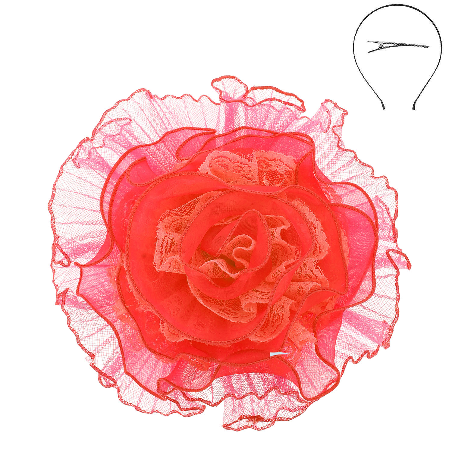 LACE MESH ROSE FASCINATOR WITH HEADBAND AND HAIR CLIP BACKING
