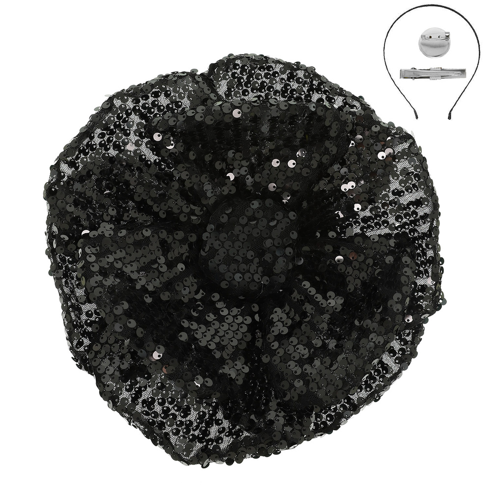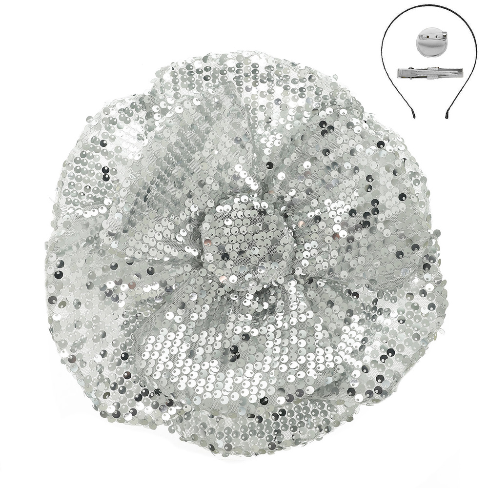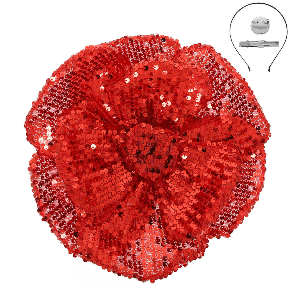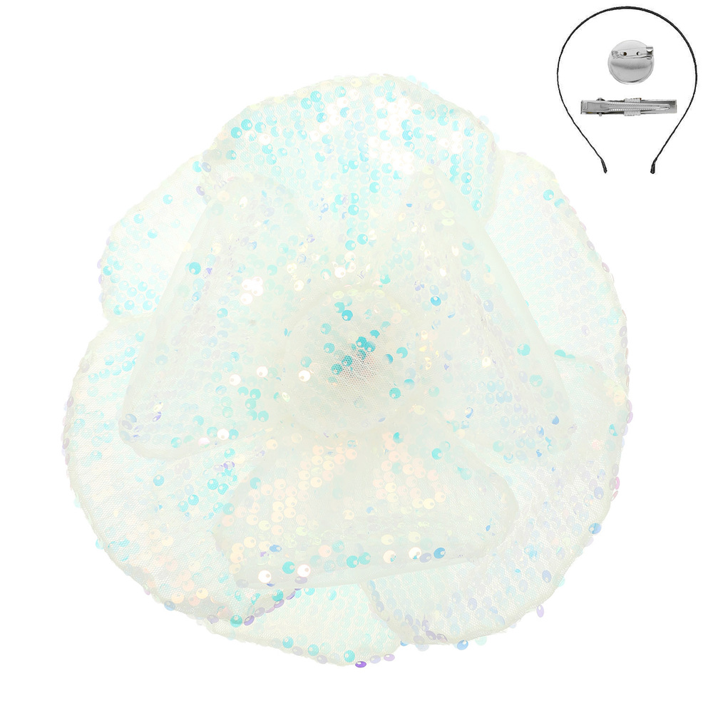 3-IN-1 SEQUIN ROSE BLOOM FASCINATOR WITH HEADBAND BROOCHE PIN AND HAIR CLIP
