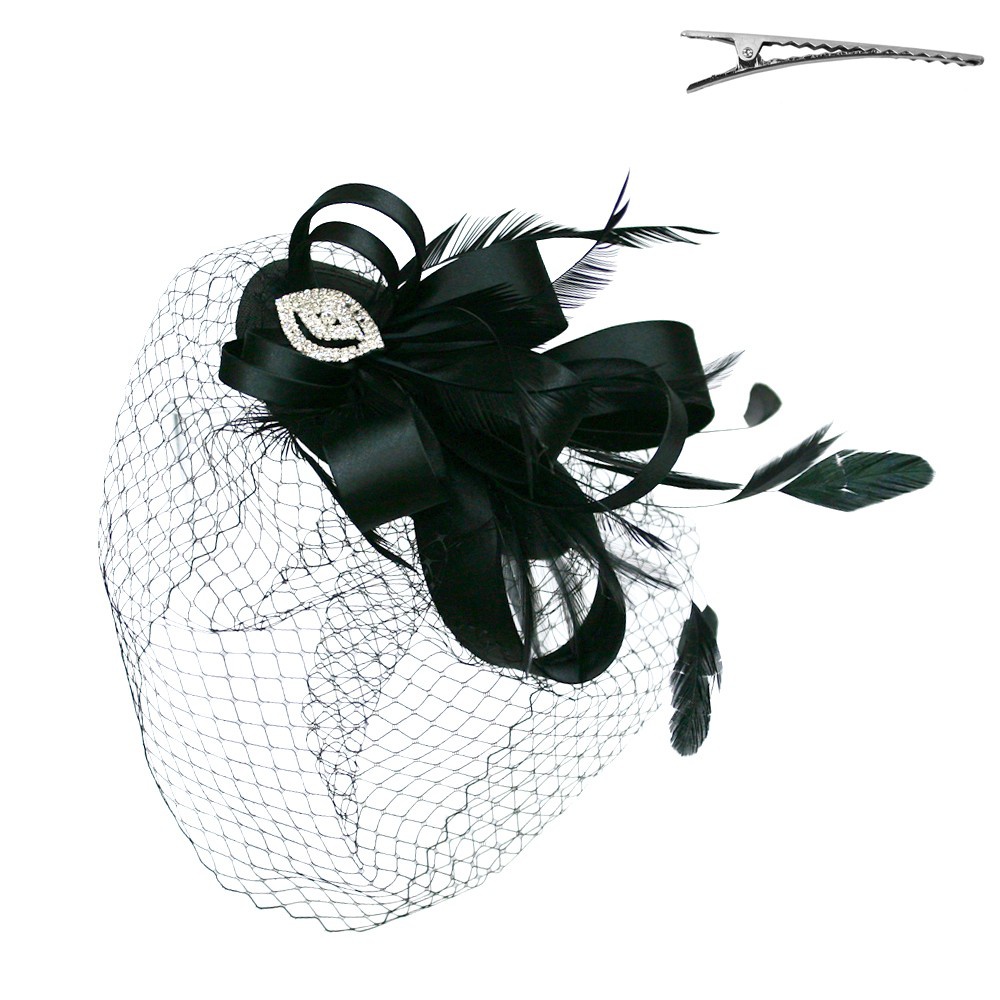 LOOPY SATIN BOW W/FEATHER FASCINATOR
